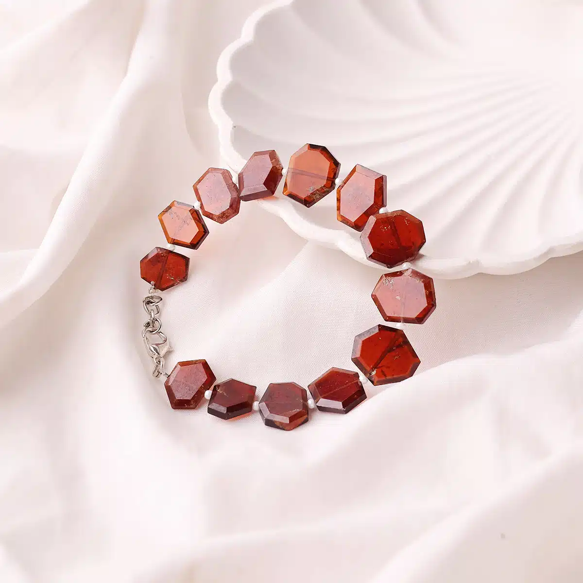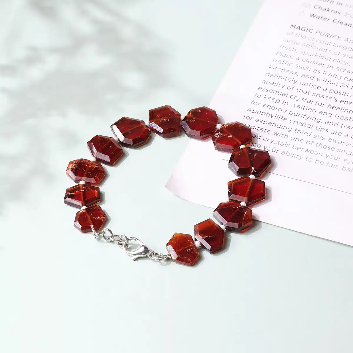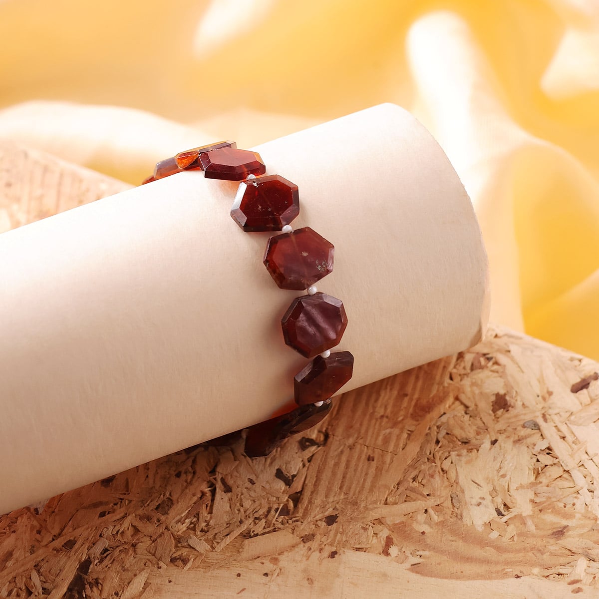 You will receive one natural Hessonite Hexagon Bracelet similar to the ones photographed. Images show typical quality. Each piece is unique, and natural variations in stone color, shape, and texture are expected.