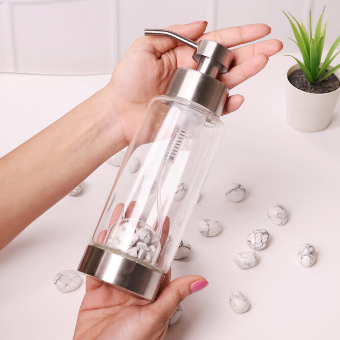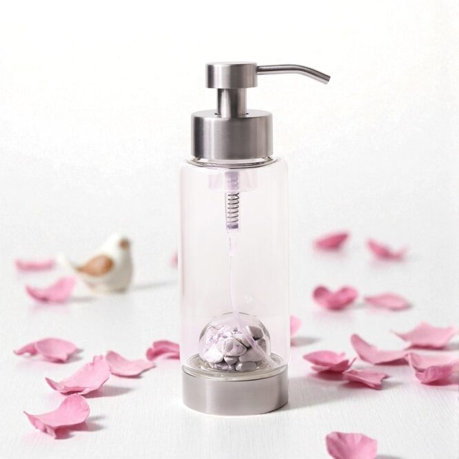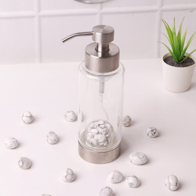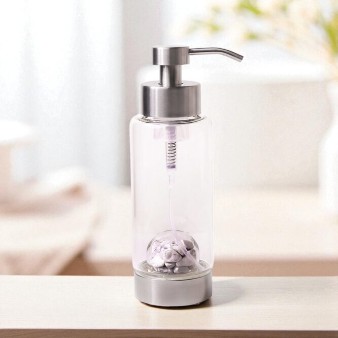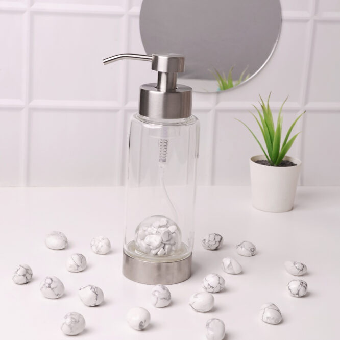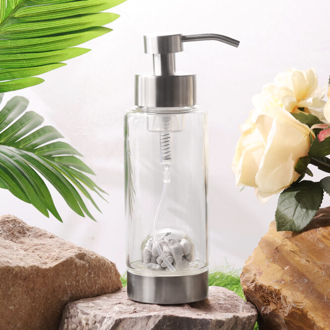 - Elegant glass design with a metal pump adds a sophisticated and minimalist look.