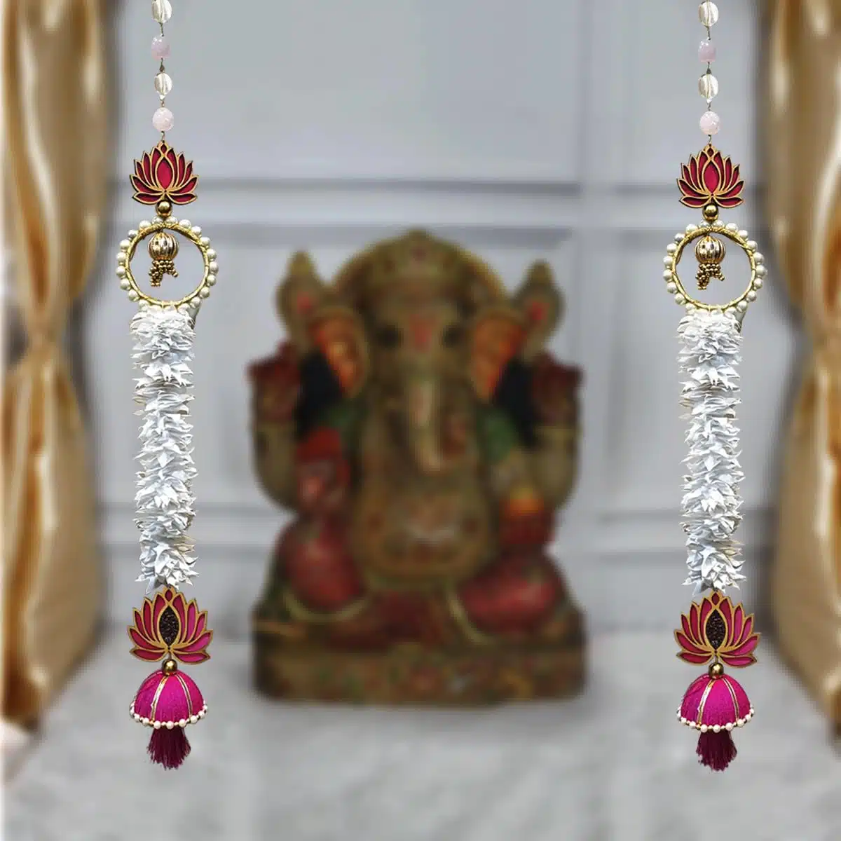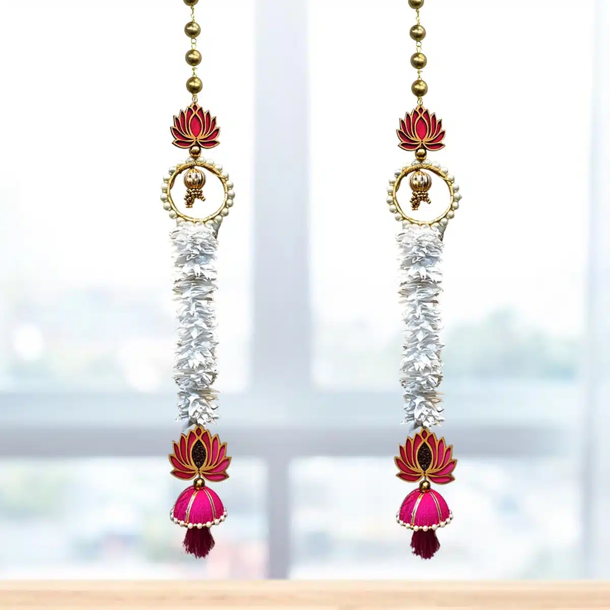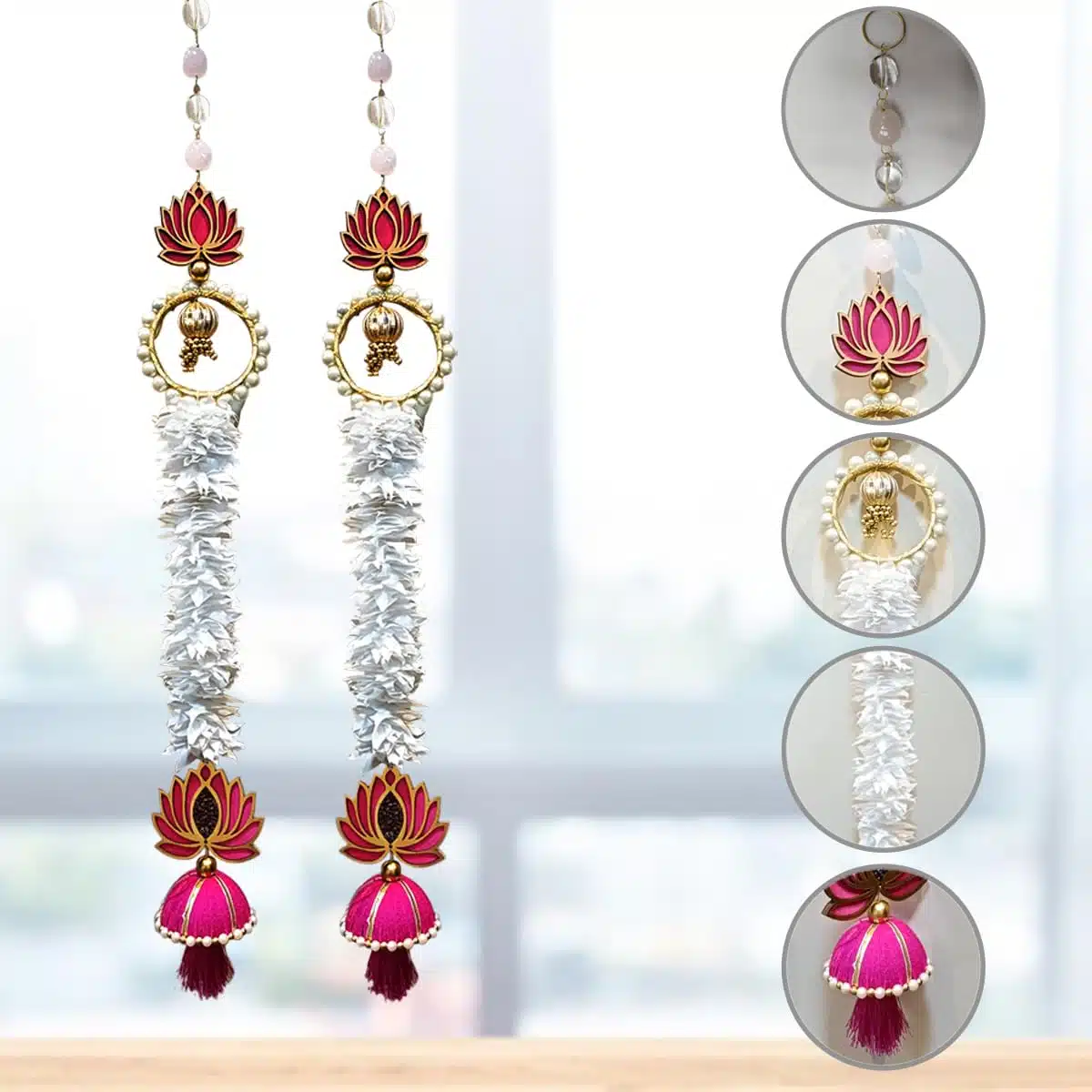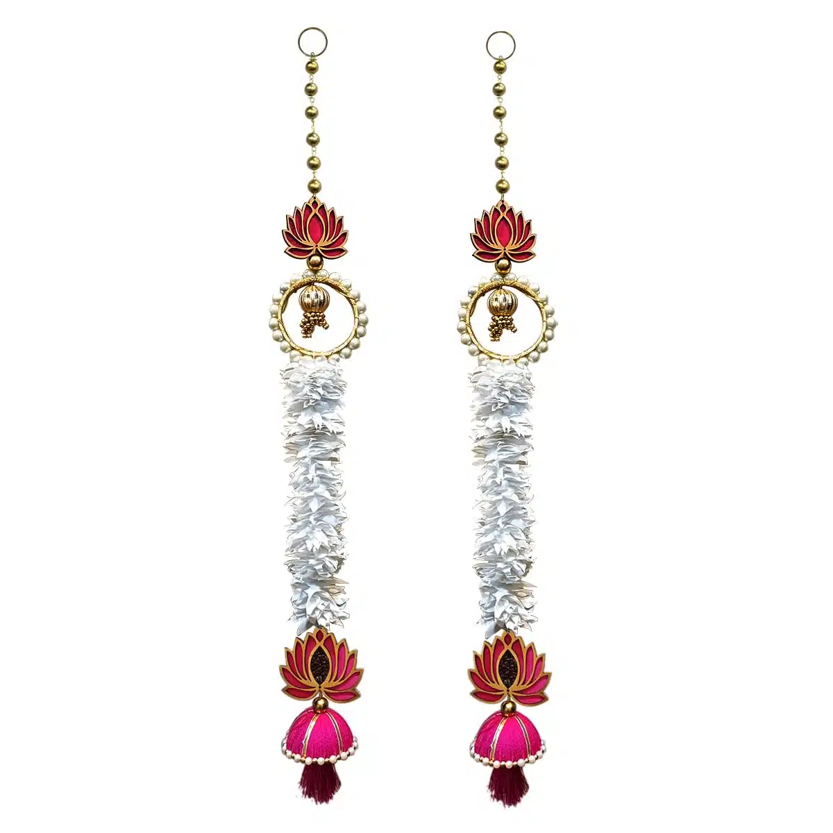 - Decorative Handmade Wall Decor Lotus Hanging with White Artificial Flowers Jhumki Style Decorative Hanging, Suitable For Home Decor, Diwali Decoration, Wedding And All Festivals Decor.Give Final Touch to Your home by These Beautiful Wall Hanging.The product is useful throughout the year. It is best to be used during festivals, Griha-Pravesh, Spiritual decors, Weddings, Receptions, Inaugurations, Cultural events, Hotel Decorations etc.