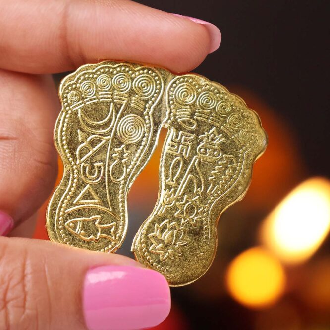 - Lakshmi Charan Paduka invites Goddess Lakshmi’s presence, blessing the home with fortune and abundance.