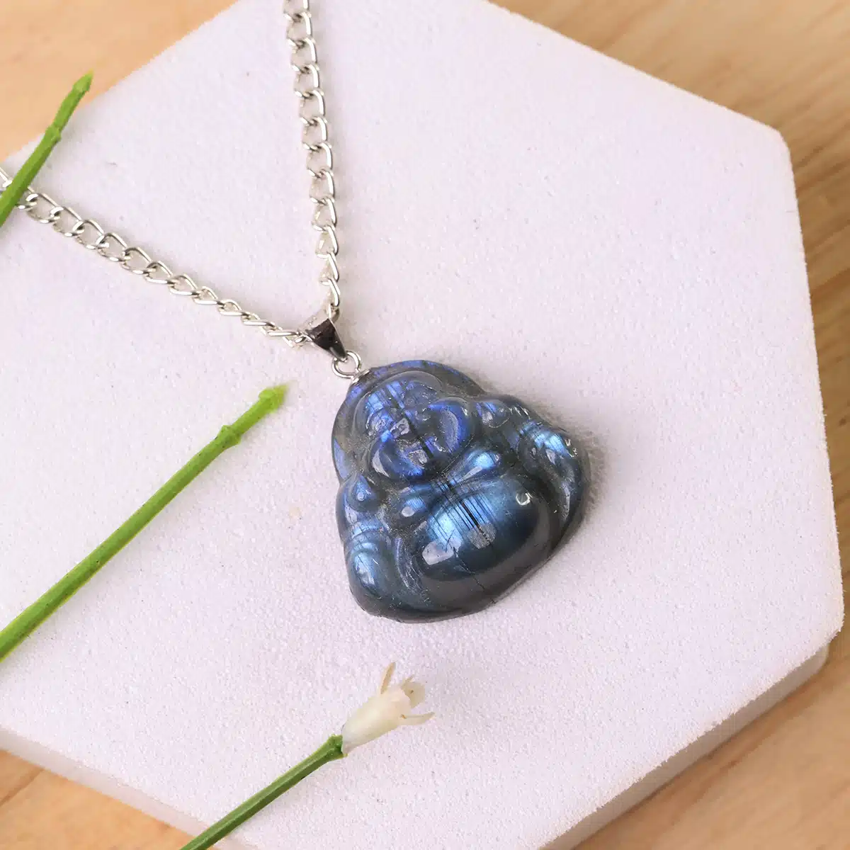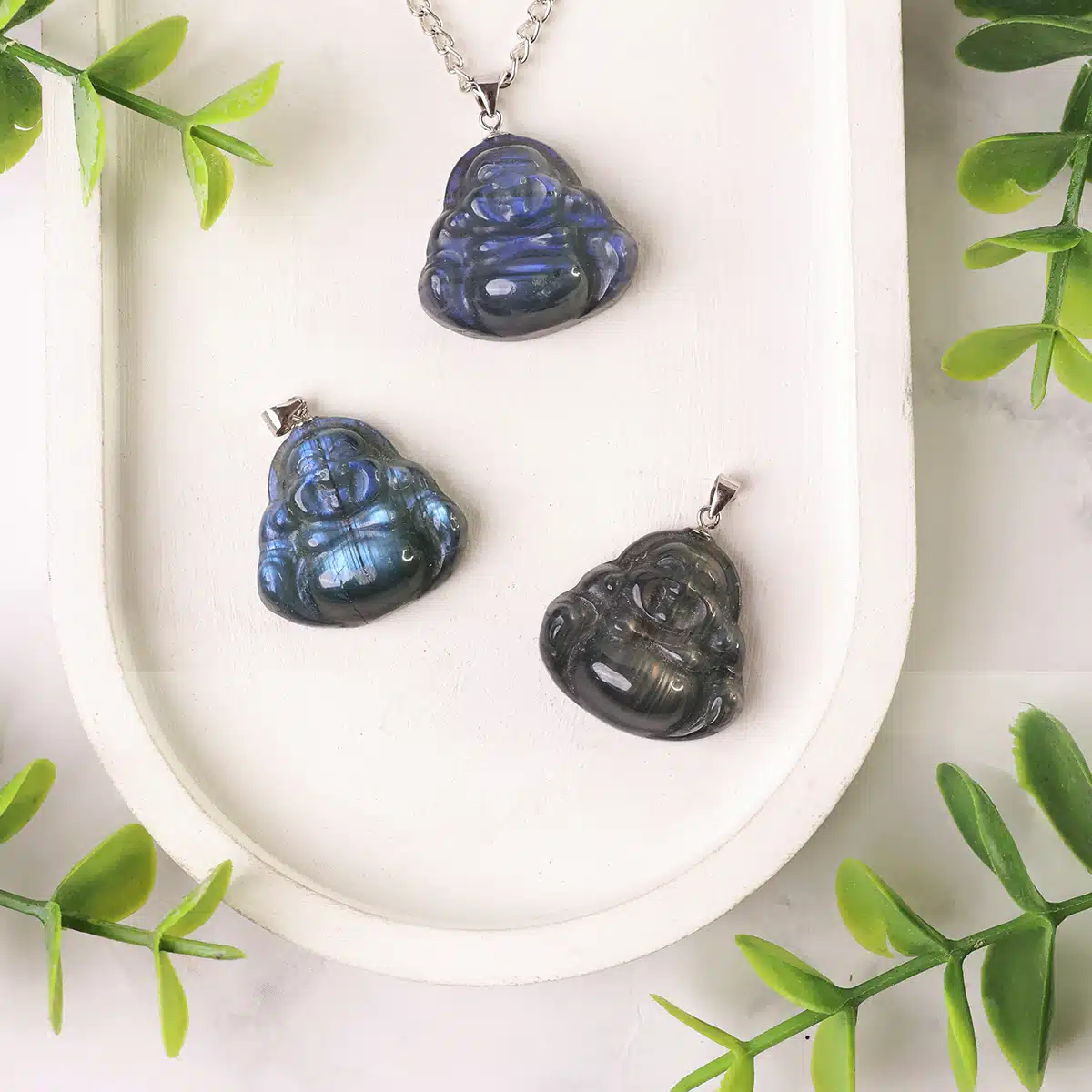 - Labradorite Buddha Pendant attracts luck and good fortune.