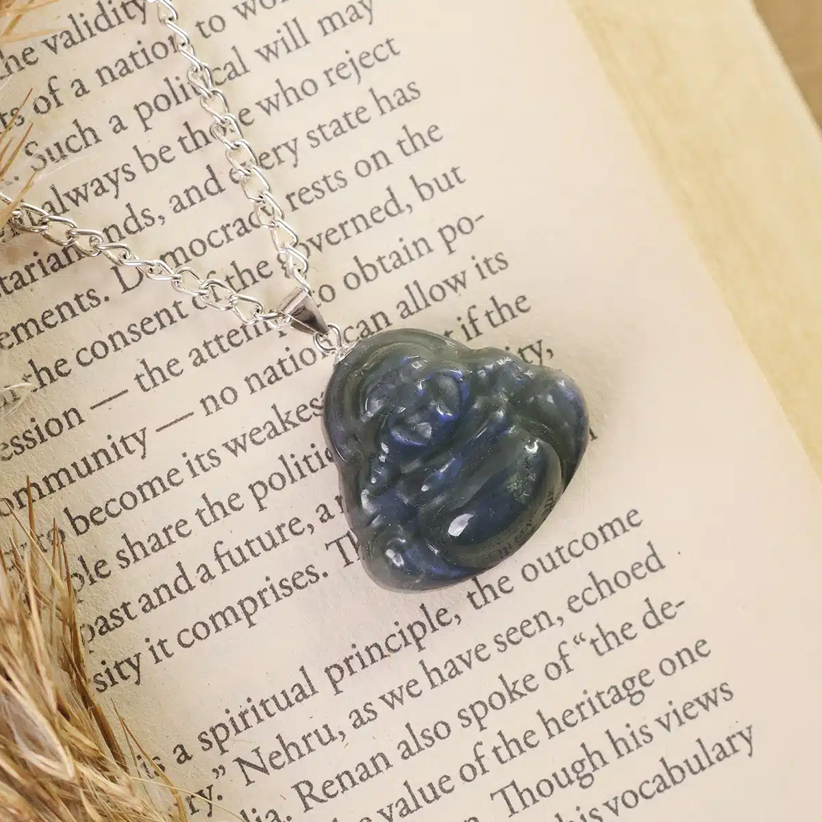 - Labradorite Buddha Pendant enhances self-trust and strength.