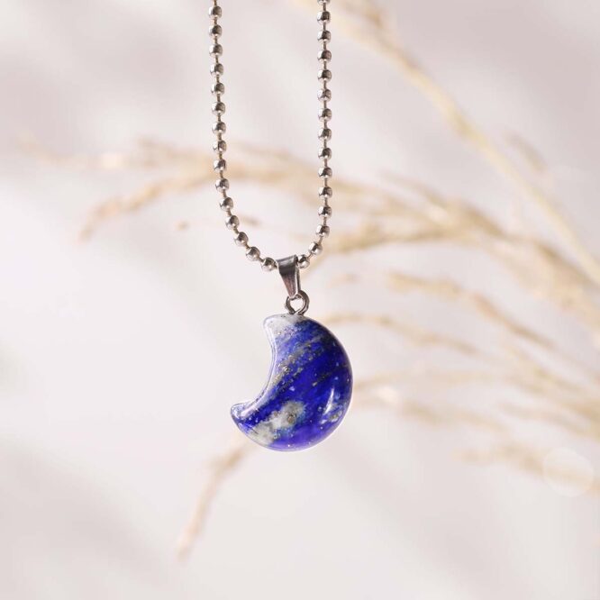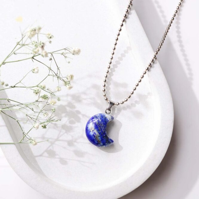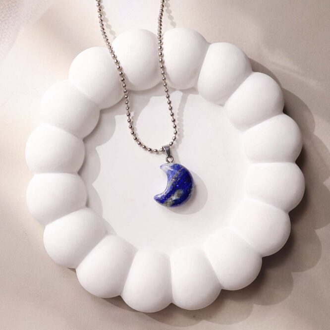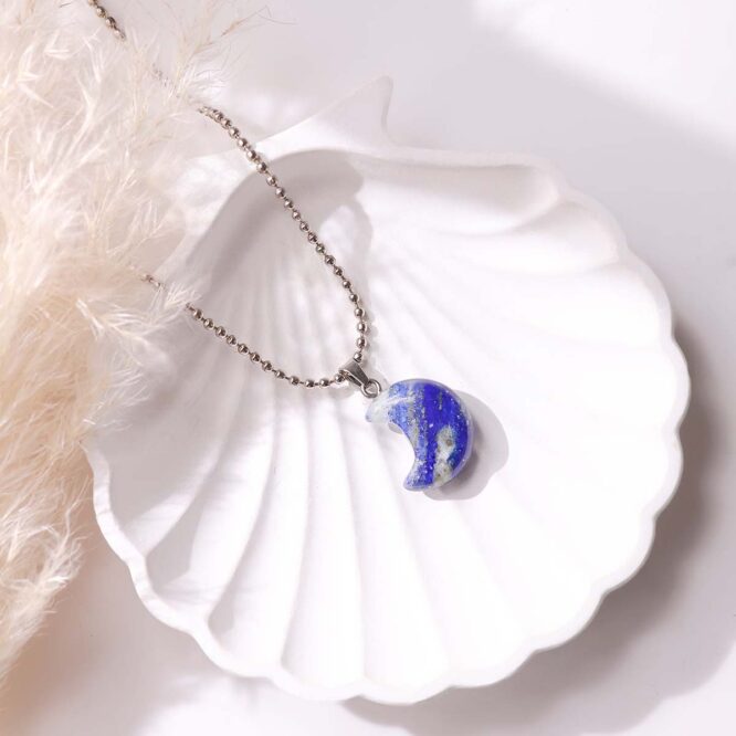 - The half-moon shape symbolizes intuition, new beginnings, and cyclical growth, complementing Lapis Lazuli’s energy.