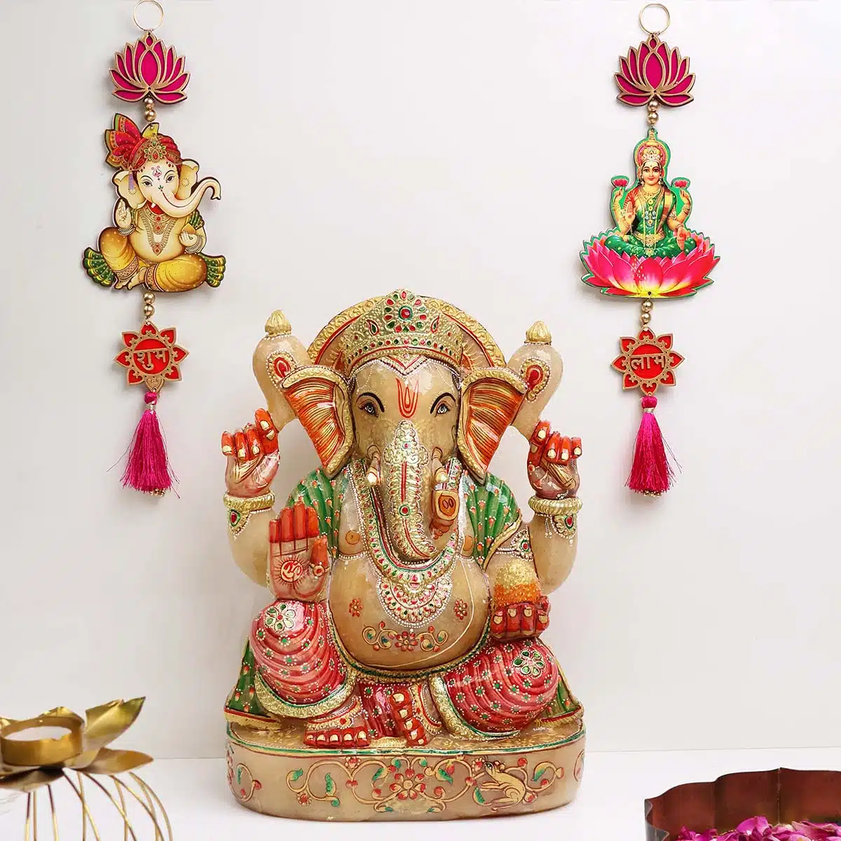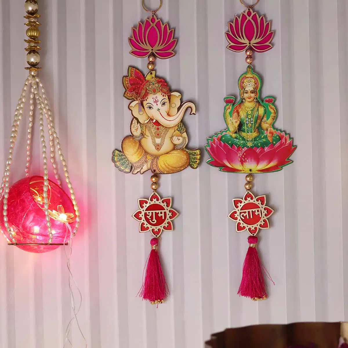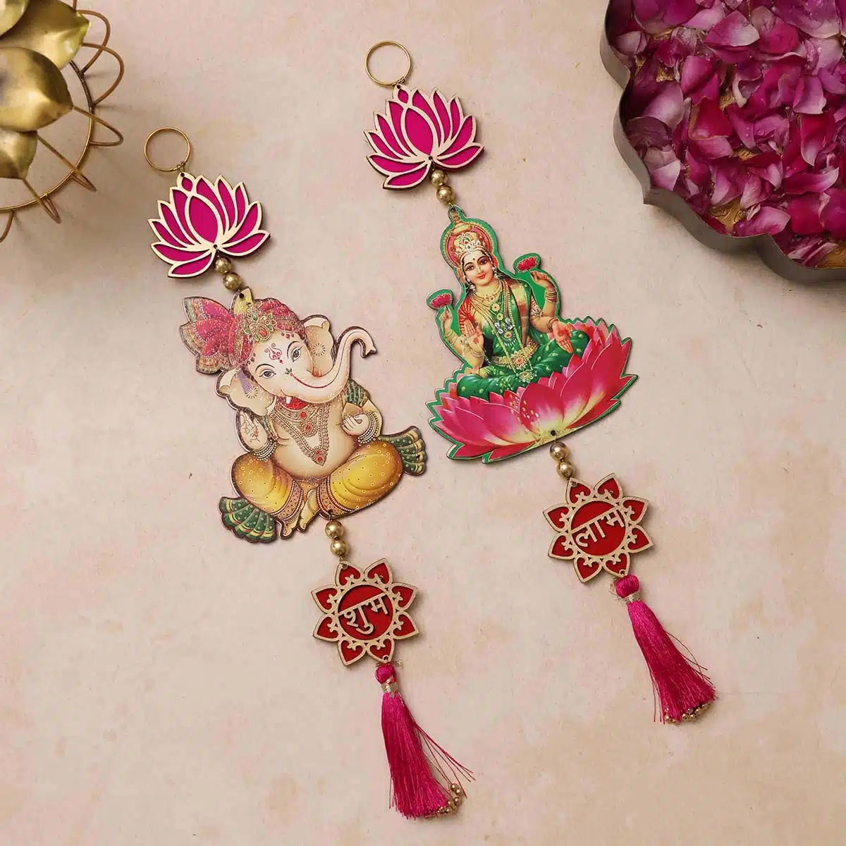 - Lotus with Shubh Labh Lakshmi Ganesh Door Hanging Is The Best Product To Decorate Your House During Any Special Occasion like Diwali, Ganpati, housewarming, etc. Pooja Decoration Items For Festival , Pooja Room Decoration Items For Home , Wall Decoration Items For Diwali, Wall Hangings For Home Decoration Etc.