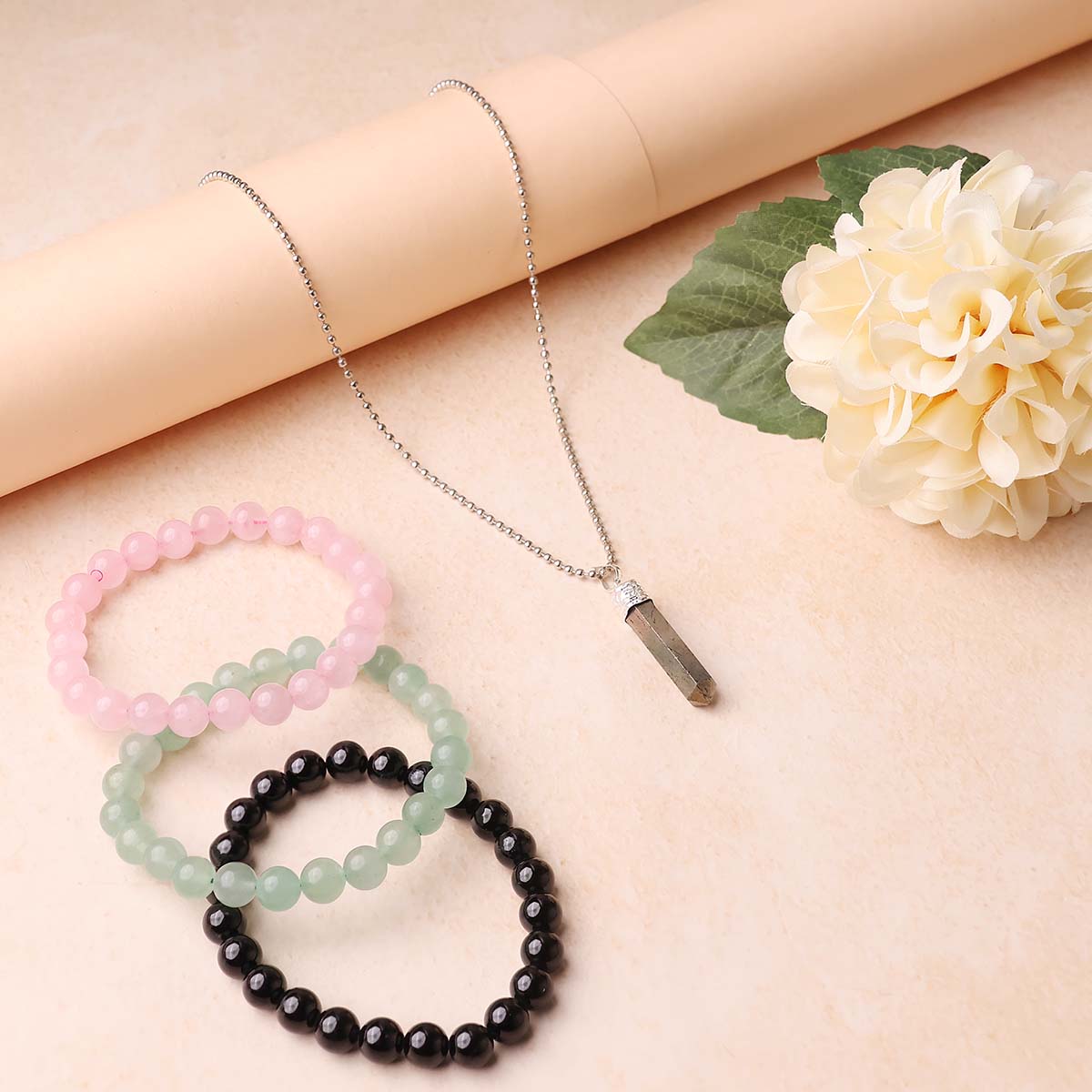 - Rose Quartz Beads: Stone of love and emotional healing that promotes harmony and compassion