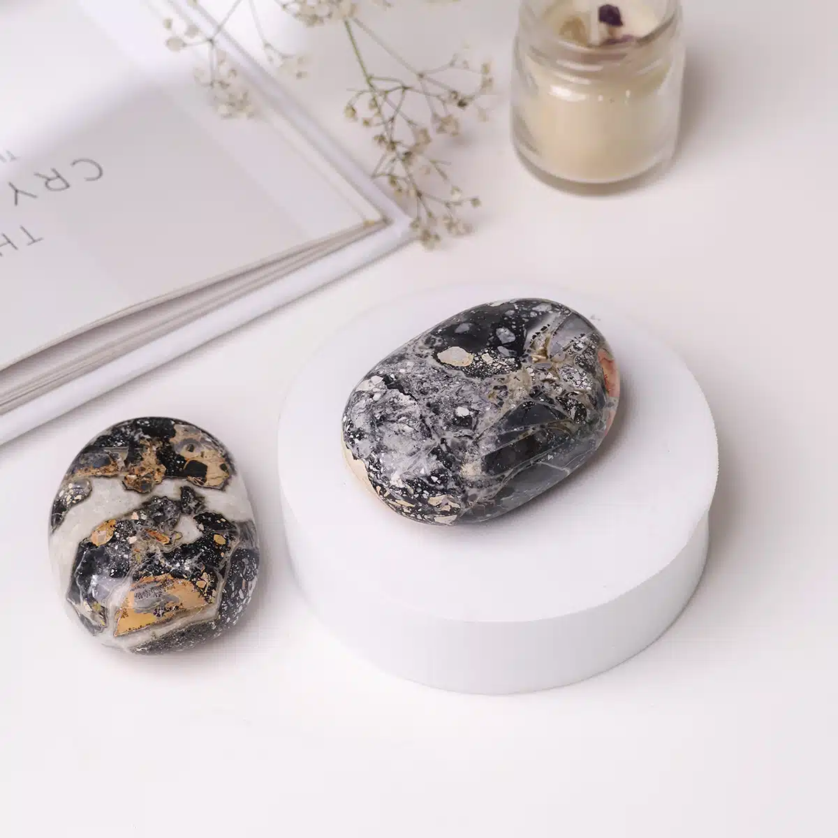 - This palm stone encourages standing in your truth and making decisions from a place of personal power. It gently boosts self-confidence and assertiveness in challenging situations.