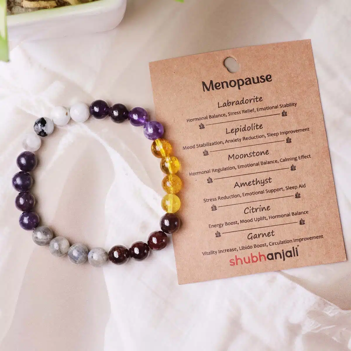 - The natural gemstones in this Menopause Bracelet may assist in relieving joint pain and body aches.