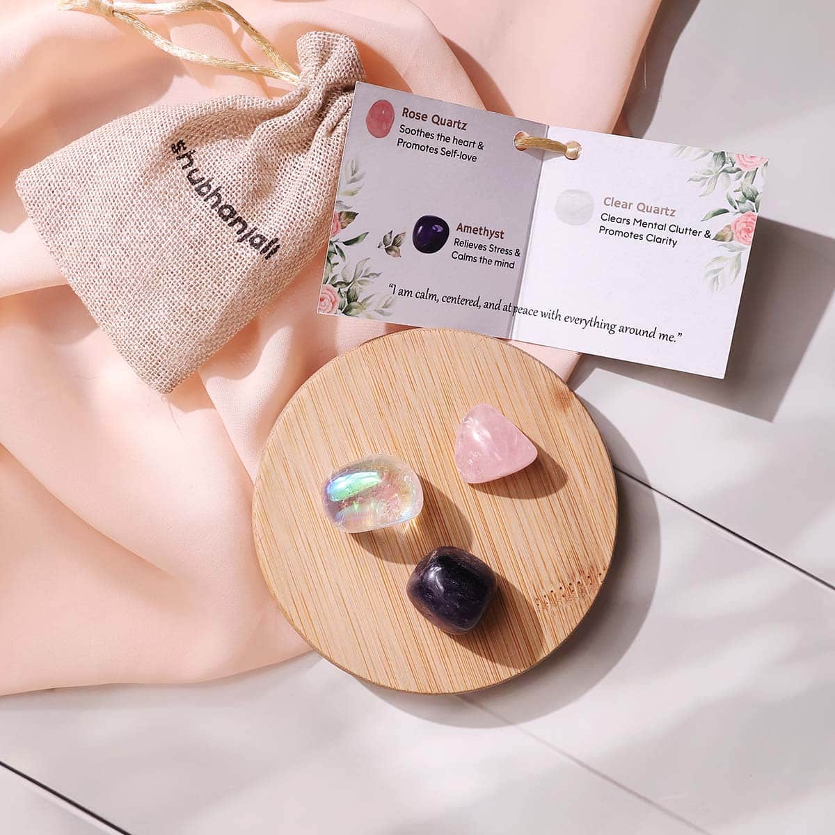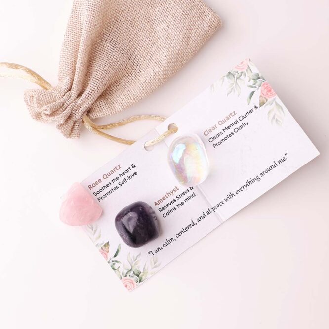 - Together, these crystals create a synergistic effect for peace, relaxation, and mental stability.