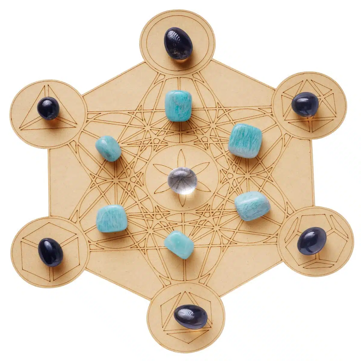 * When crystals are combined with sacred geometry, it amplifies the healing energy properties. Add a focused intention to the grid board and manifest your true desires and dreams.