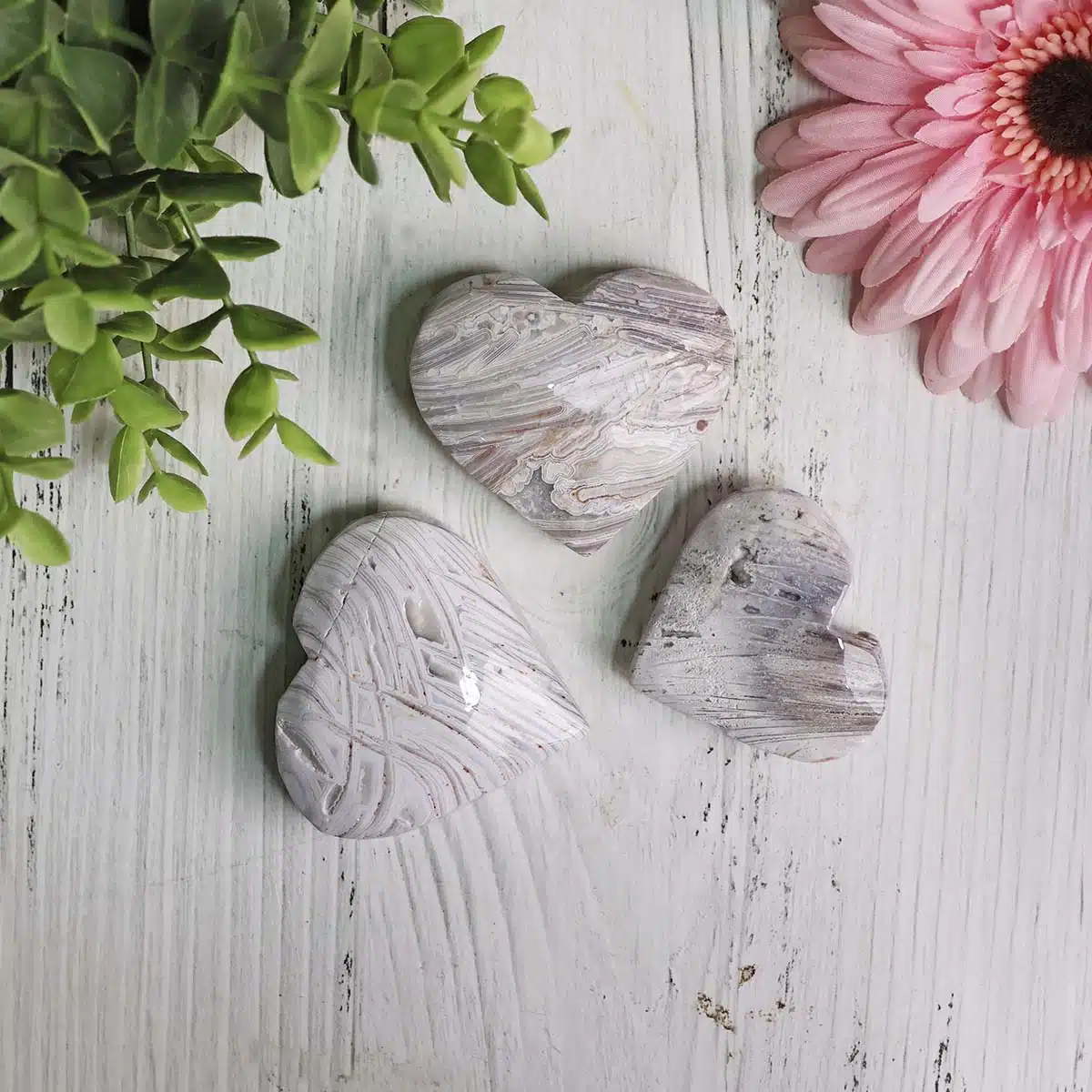 White Mexican Agate is believed to have grounding properties, helping individuals connect with the present moment and find inner peace. It is also thought to promote mental clarity, enhancing focus and decision-making. The heart shape adds an emotional dimension, making it a popular choice for those seeking a sense of calm and balance in their lives.