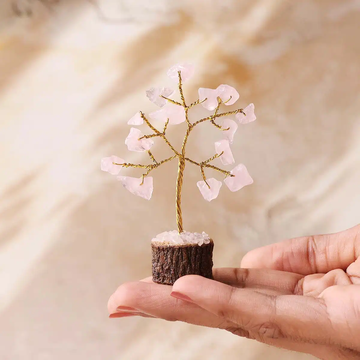 - Rose Quartz Tree – Radiates unconditional love, emotional healing, and peace in relationships.