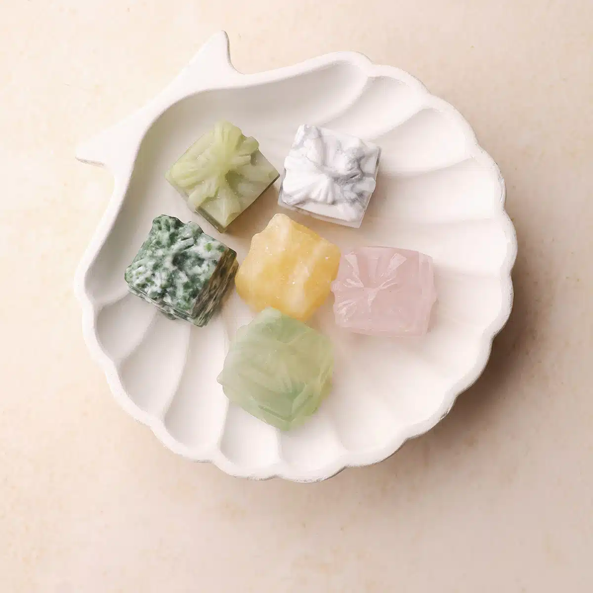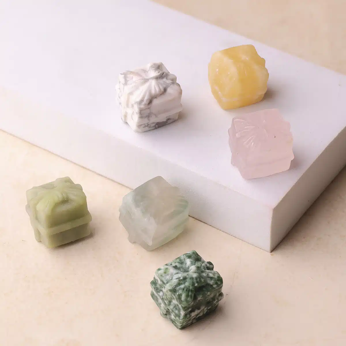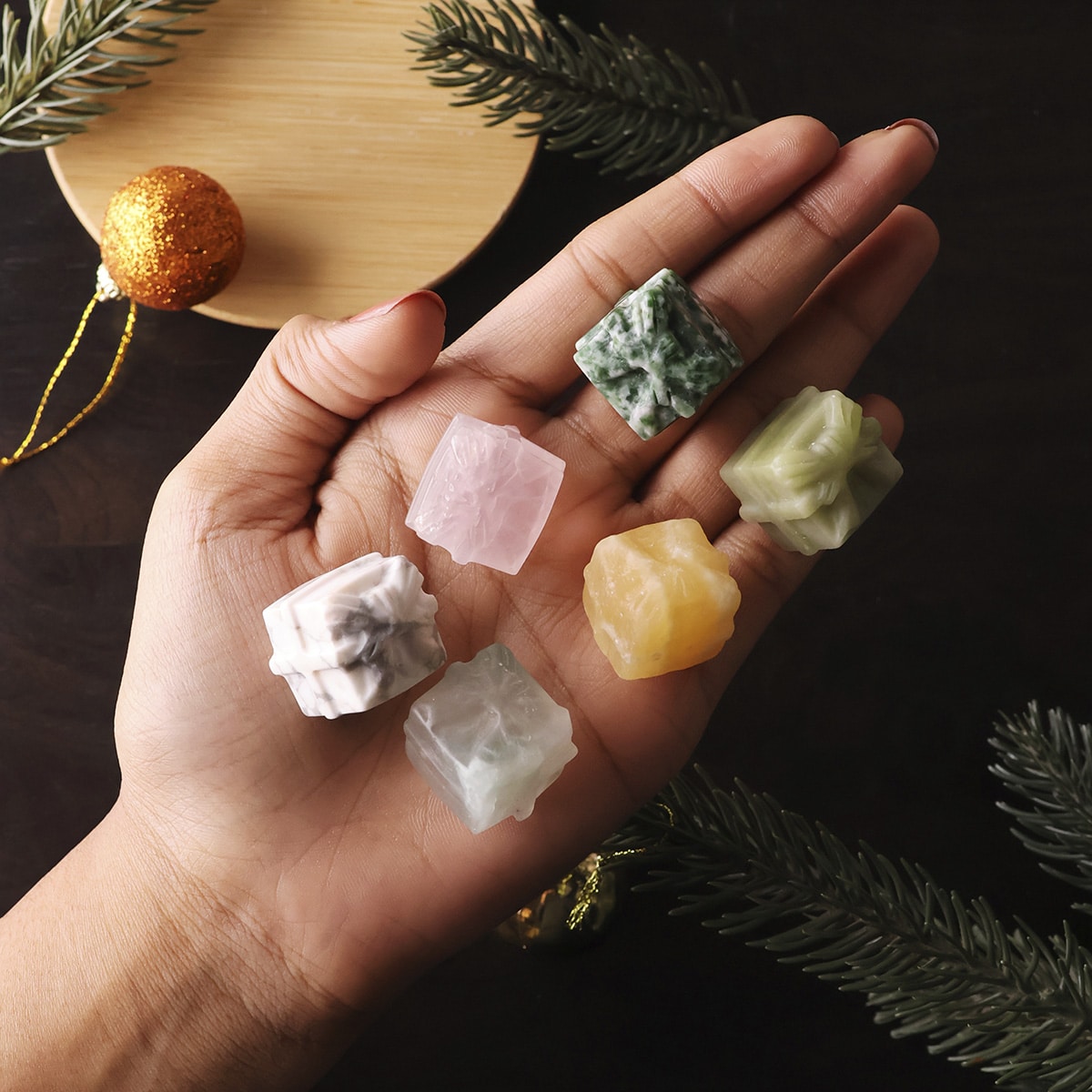 * Please Note – Each Gift Box is sold individually. You’ll receive one randomly from Howlite, Yellow Calcite, Rose Quartz, Serpentine, Multi Fluorite & Tree Agate. We cannot guarantee a specific crystal.