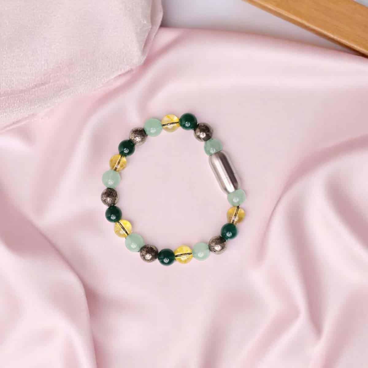 - Infused with the energy of abundance-attracting stones like Citrine (the “Merchant’s Stone”) and Pyrite (known for its connection to luck and wealth), this bracelet is believed to draw financial opportunities and success in business ventures.