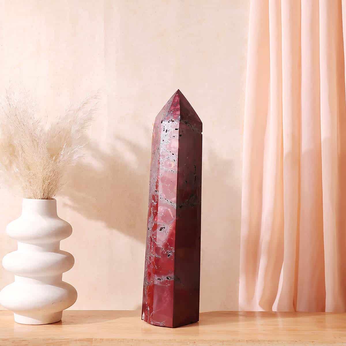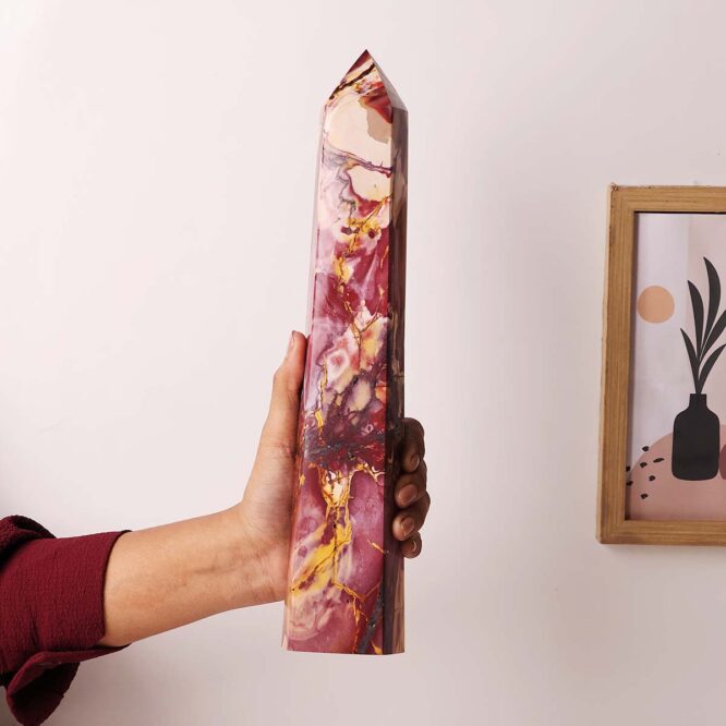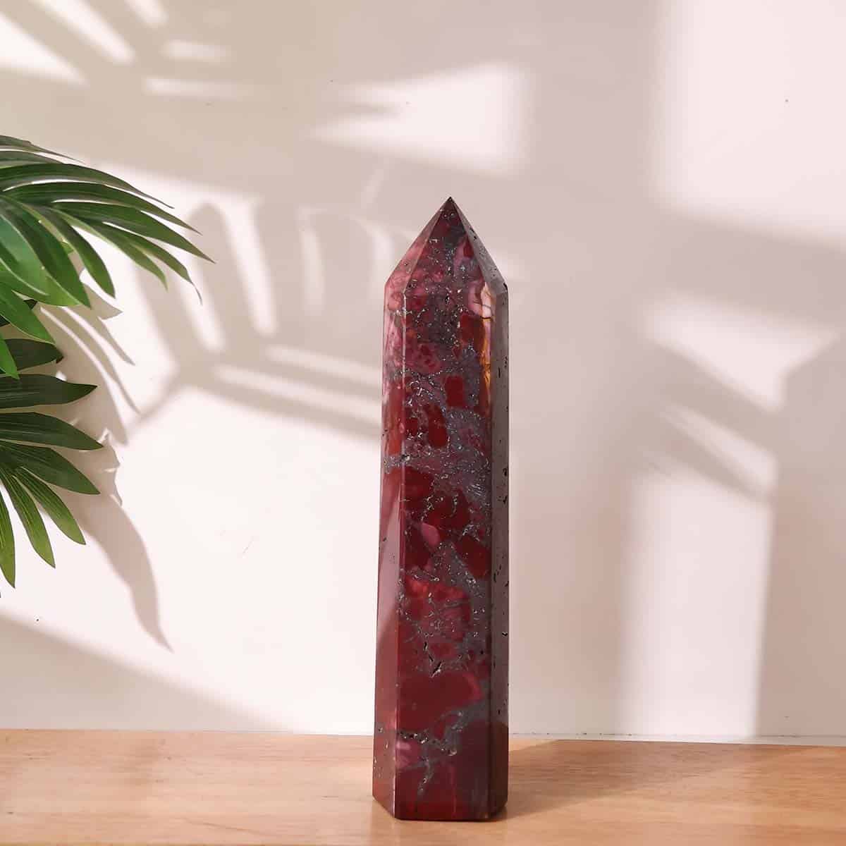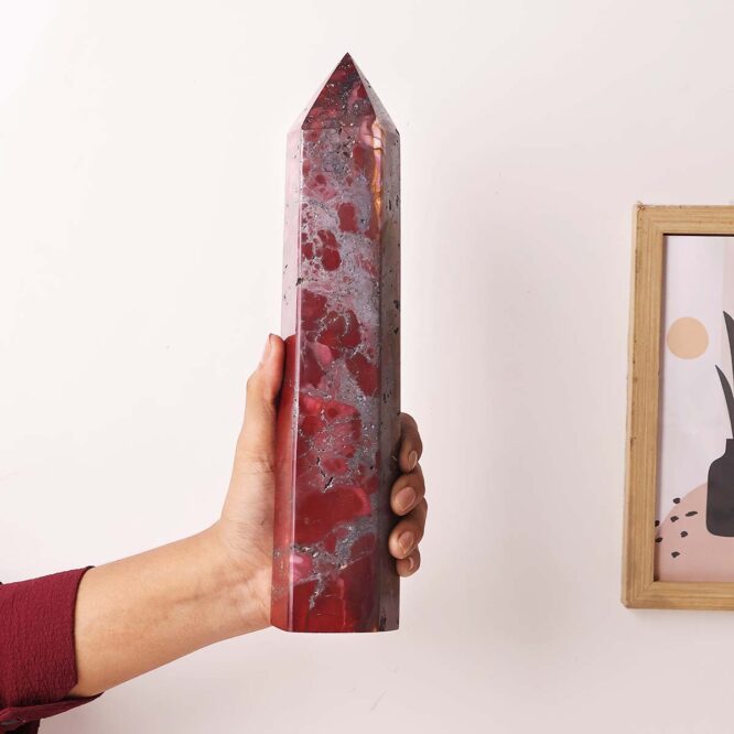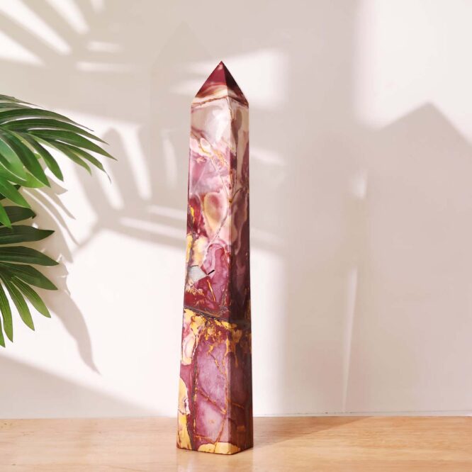The Mookaite Jasper Big Pencil Point is a powerful healing crystal that blends earthy grounding energy with spiritual growth. With its rich tones of red, yellow, and cream, this crystal point symbolizes strength, vitality, and balance.