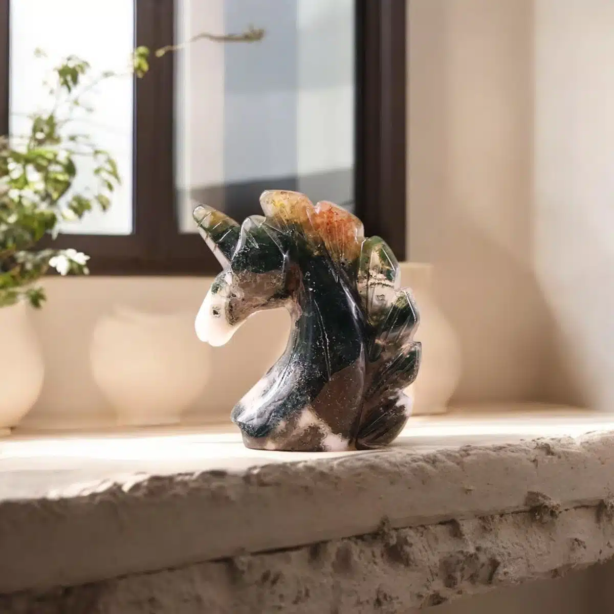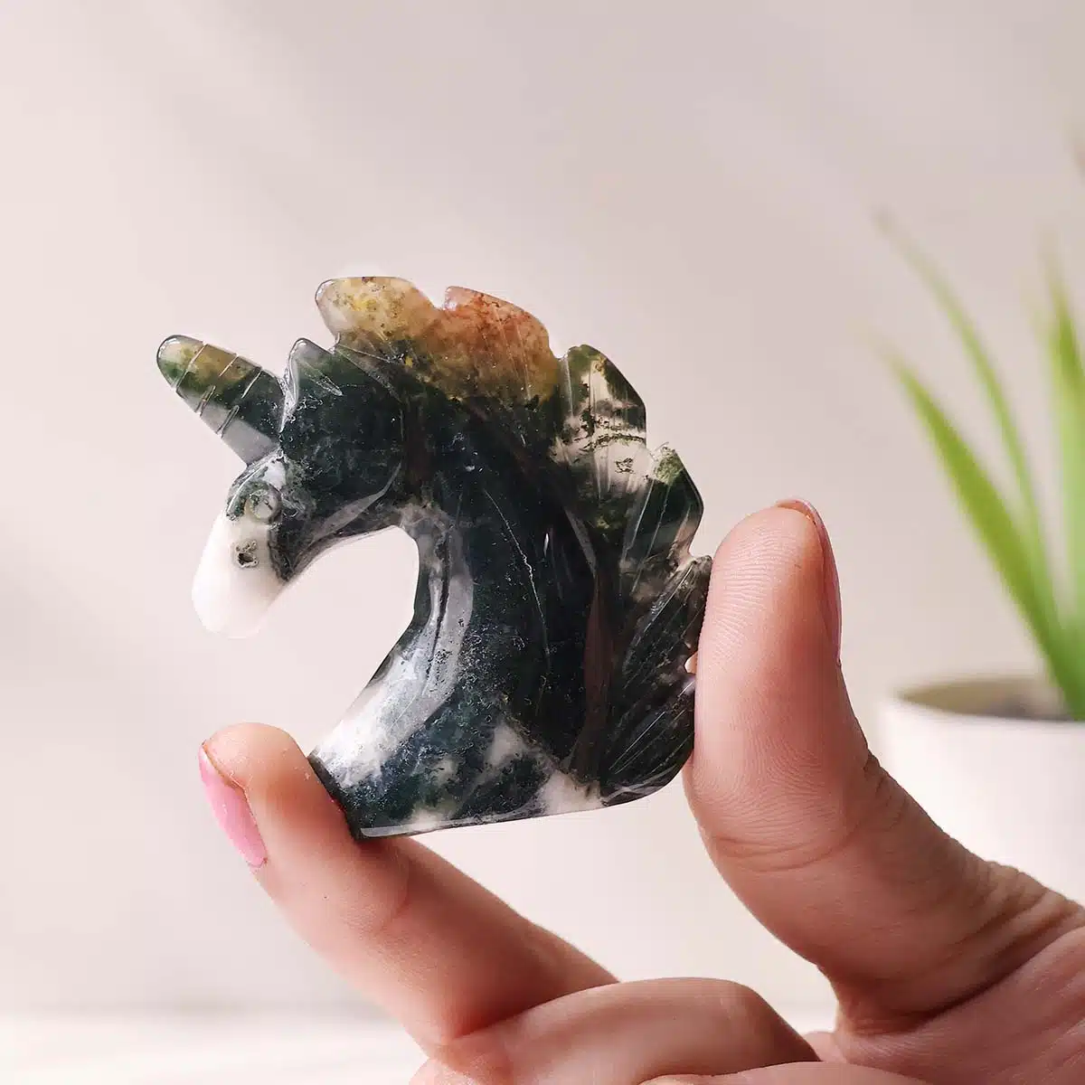Benefits of Moss Agate Small Unicorn :