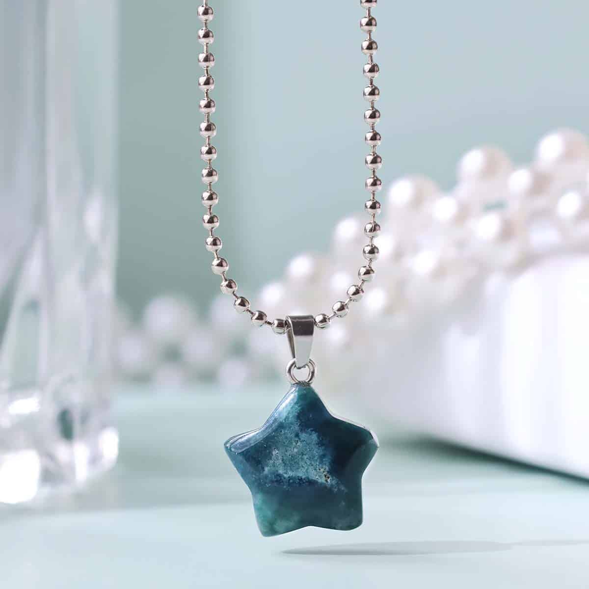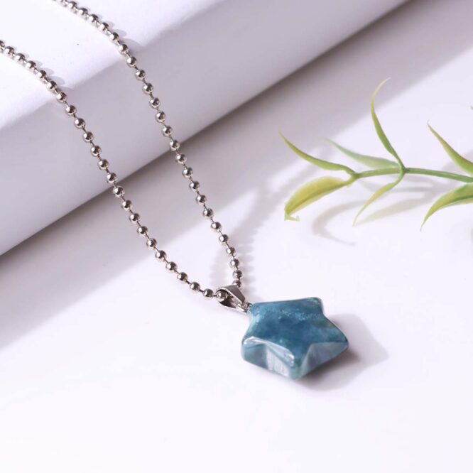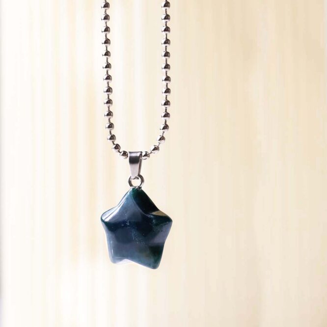 - Star shape symbolizes guidance and hope, amplifying Moss Agate’s natural energy for protection and spiritual growth.