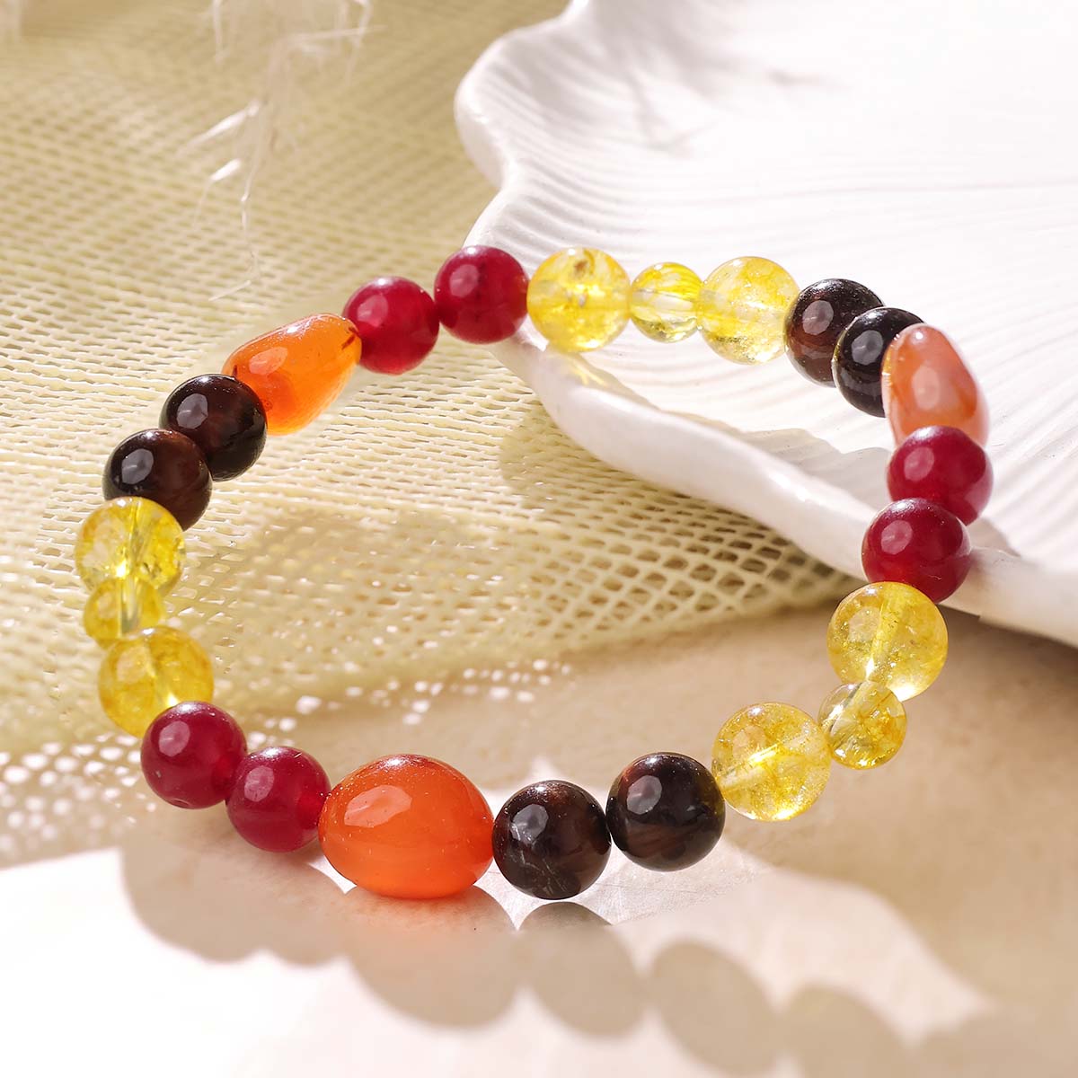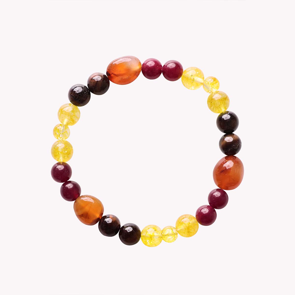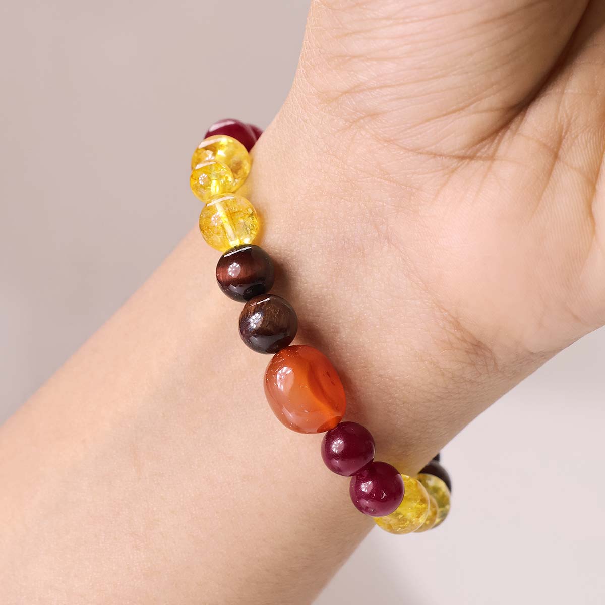 Production Dimensions:-  8mm 24 beads , 8 mm beads of Red Tiger Eye, 10 mm tumble of Red Carnelian, 8 mm bead of Ruby, 6 mm and 8 mm beads of Citrine.