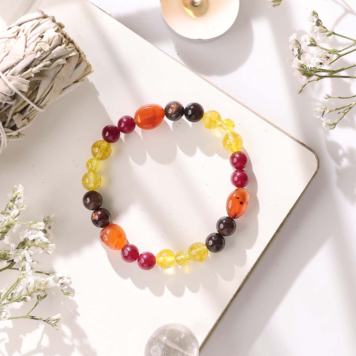 This Crystal bracelet is created using crystals like Citrine, Red Carnelian, Ruby and Red Tiger Eye. This bracelet will provide you with the motivation you require in your daily life and will keep your spirits high. Wear this crystal bracelet of motivation to feel energetic and motivated.Leave all your worries at the door. Trust that the motivation you need to accomplish in life will come from your higher self.