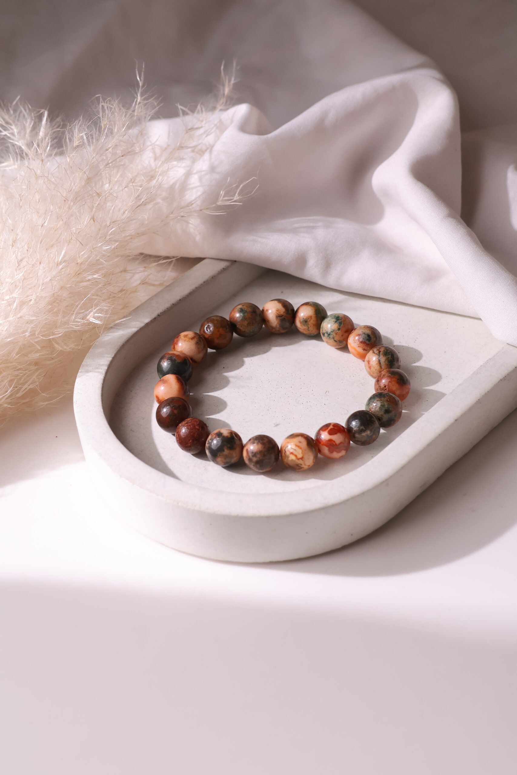 Fire Agate has been called a stone of eternal youth and is said to bring vitality to the entire body. The meaning of its name is inspired by the way these colours sometimes occur, in a way that may remind you of the flames of a fire.