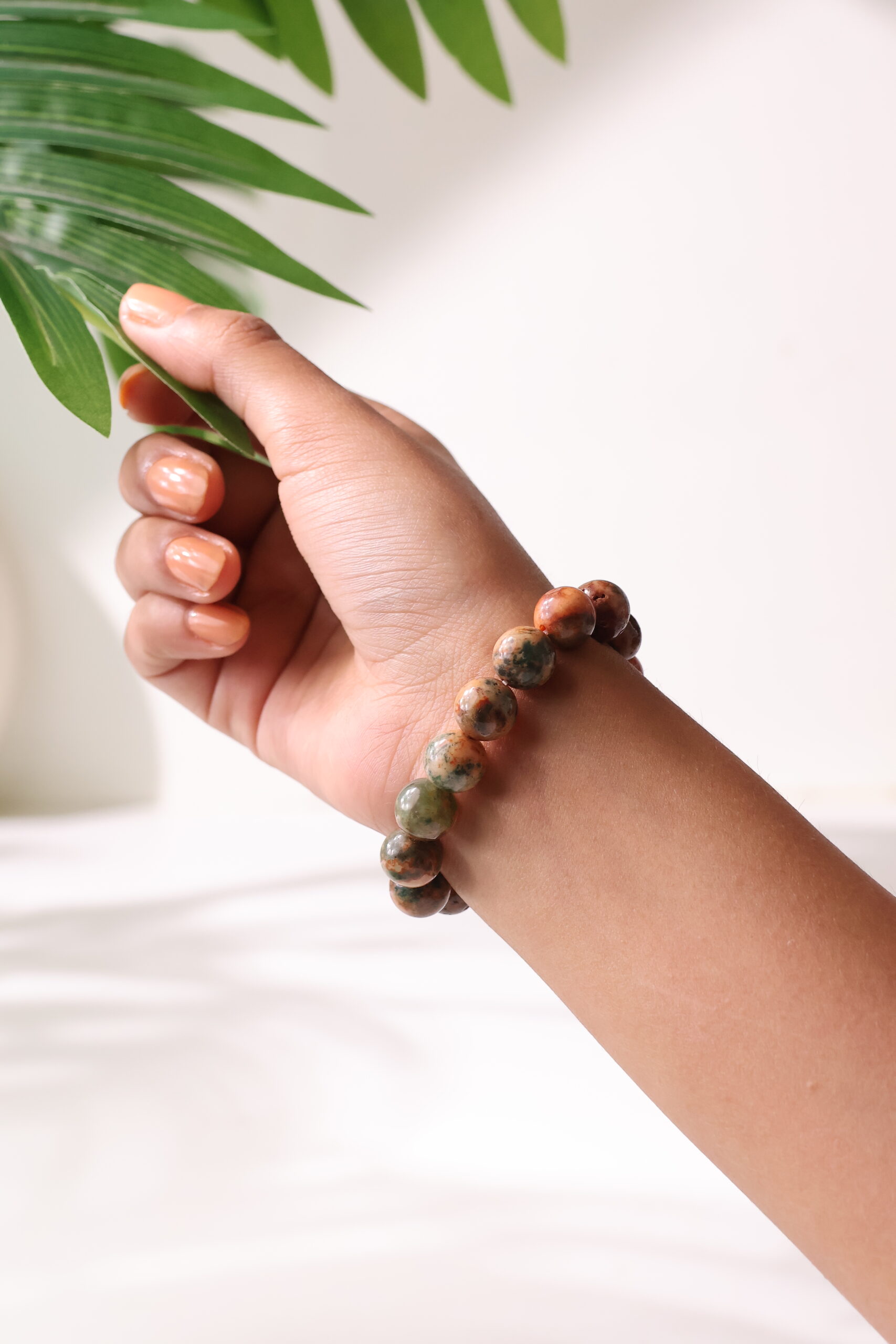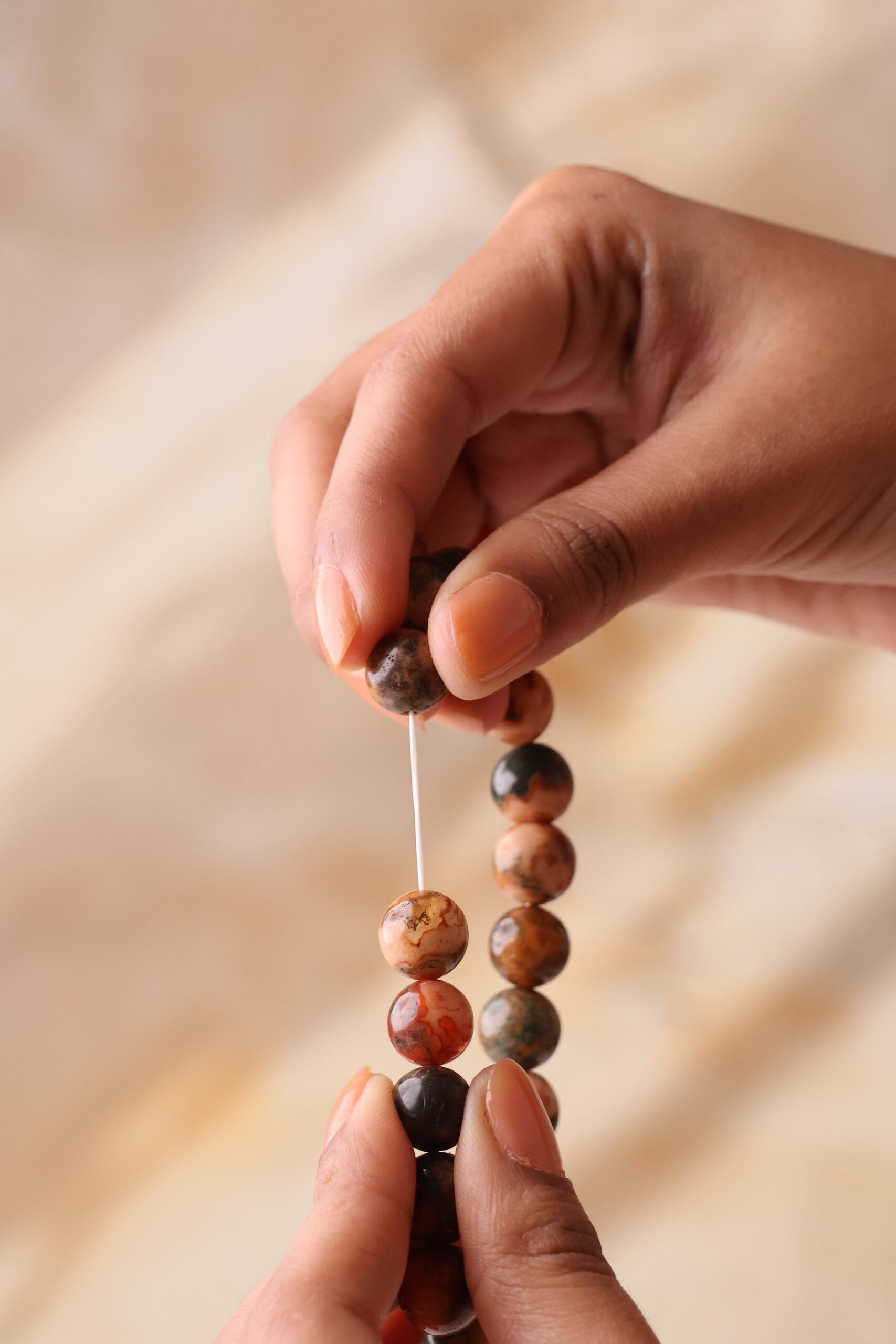 Natural Stone | Round Beads | Handmade Elastic Bracelet.