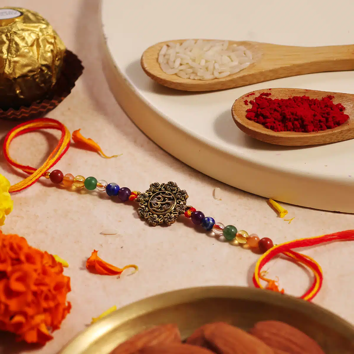 Shop Om Golden Charm 7 Chakra 4 MM Beads Rakhi