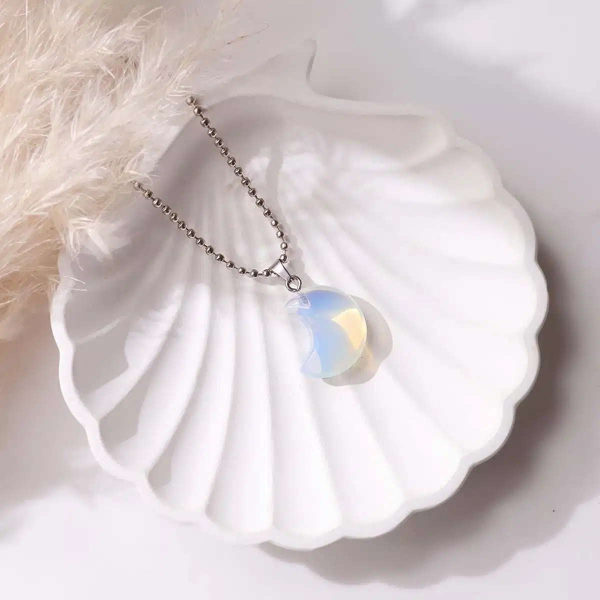 - The half-moon shape symbolizes renewal, new beginnings, and cyclical growth, amplifying Opalite’s gentle energy.