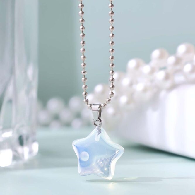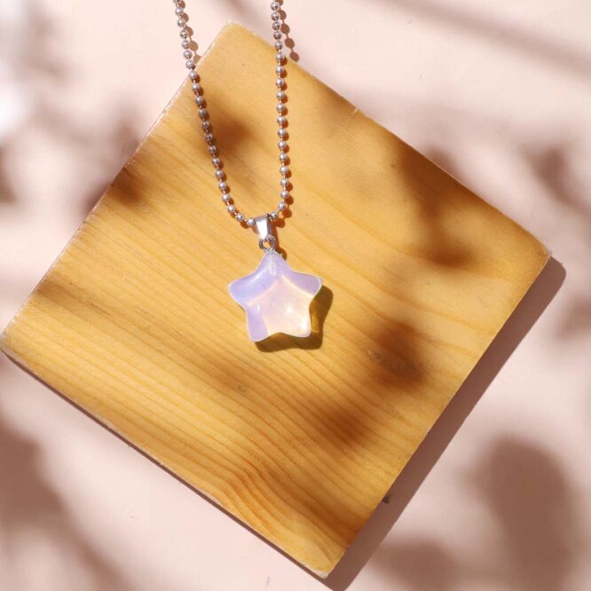 The Opalite Star Pendant is a luminous and enchanting crystal accessory that radiates calm, clarity, and positive energy.
