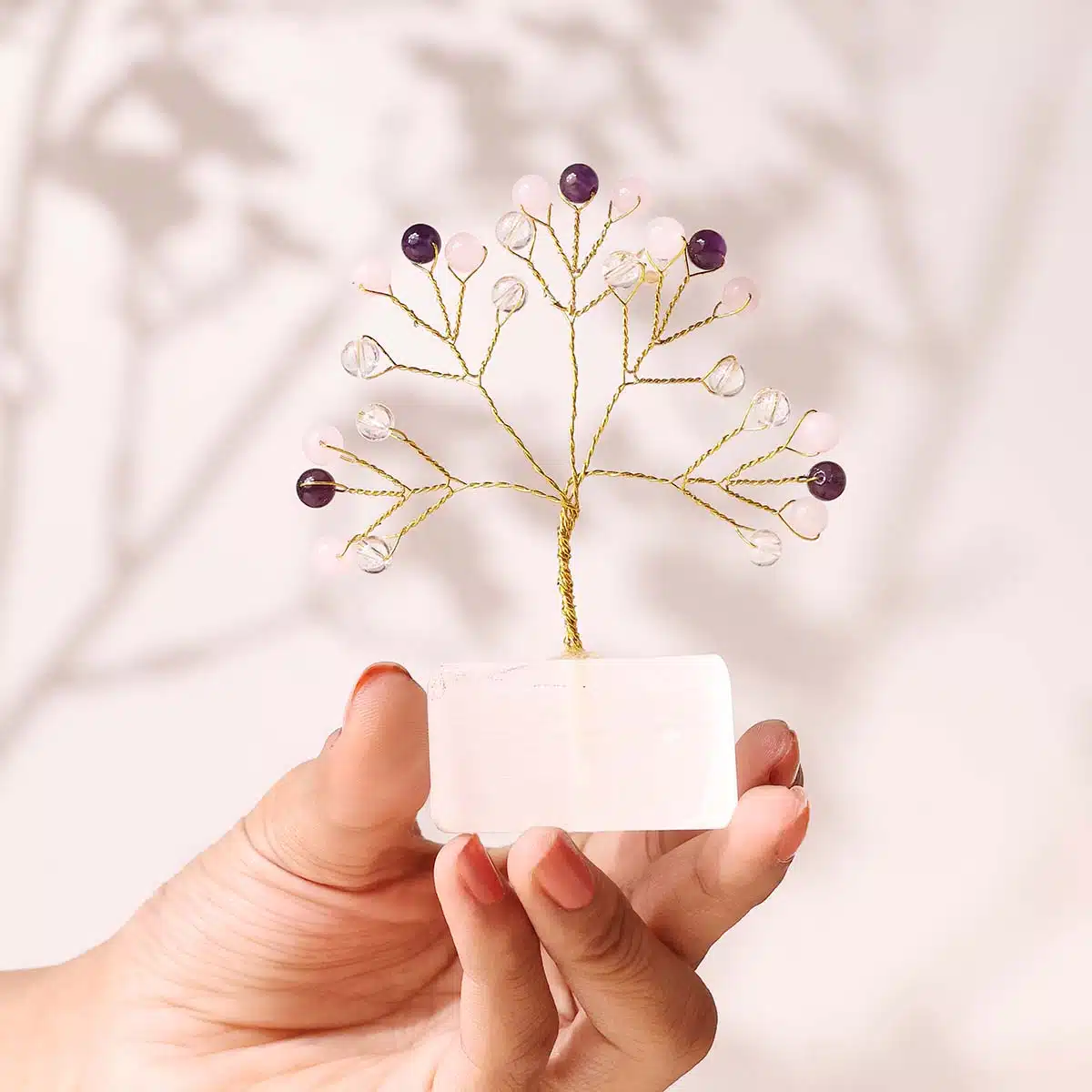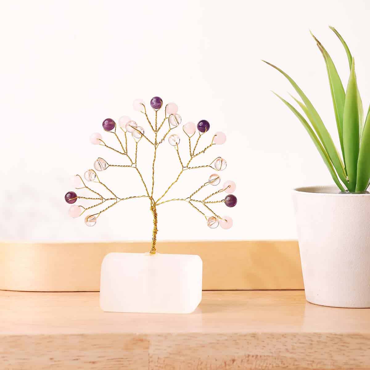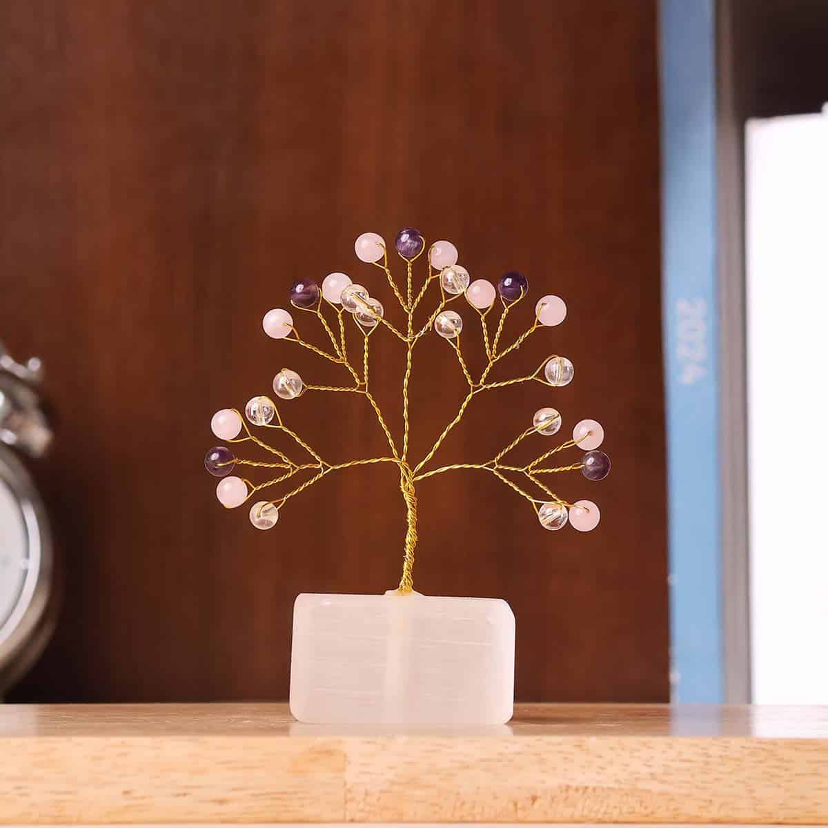 Benefits of Peace and Calm Beads on Selenite Raw Root Tree :