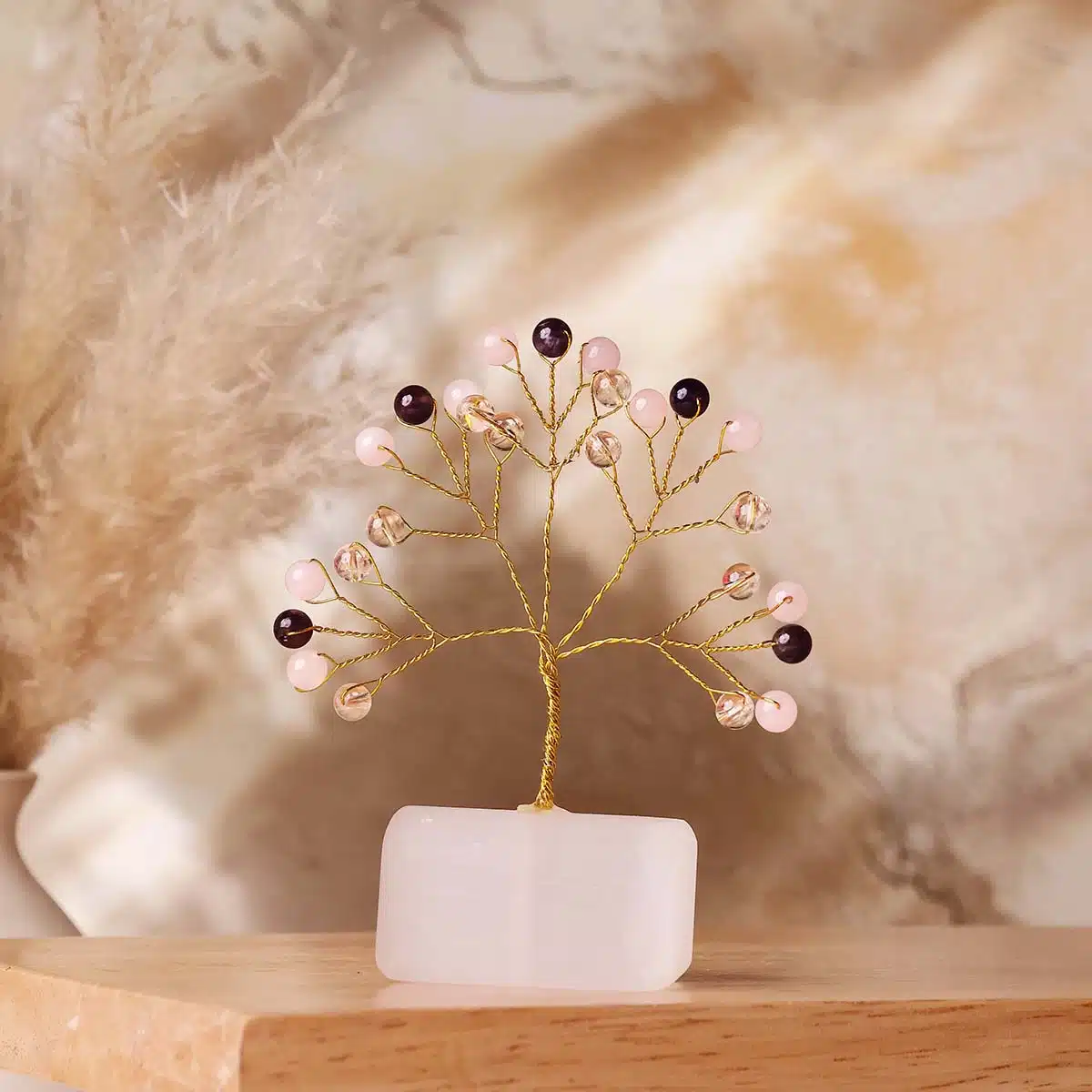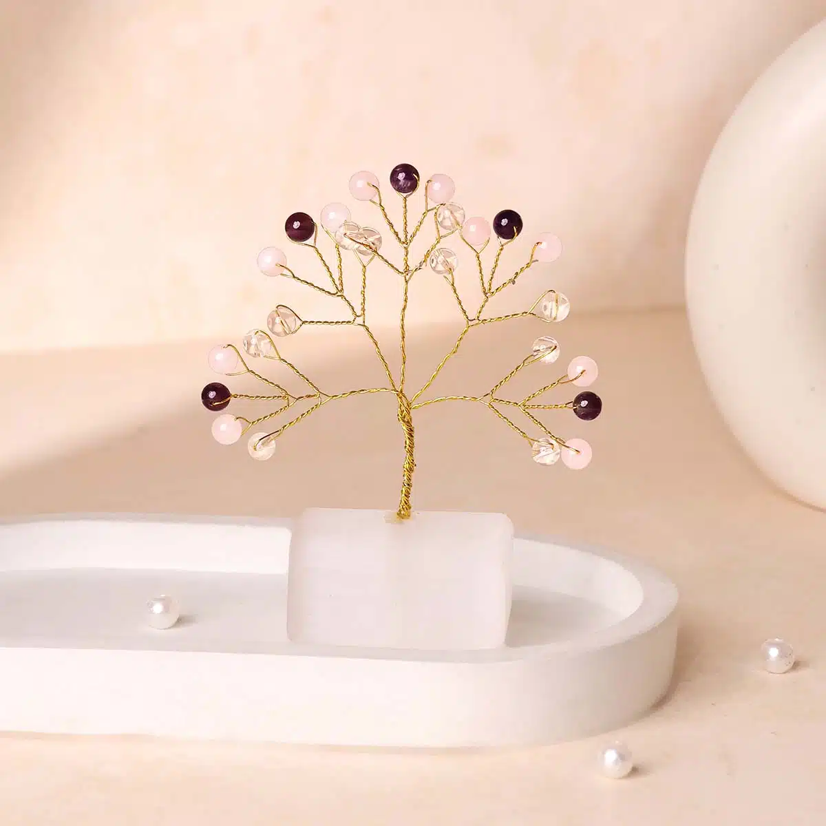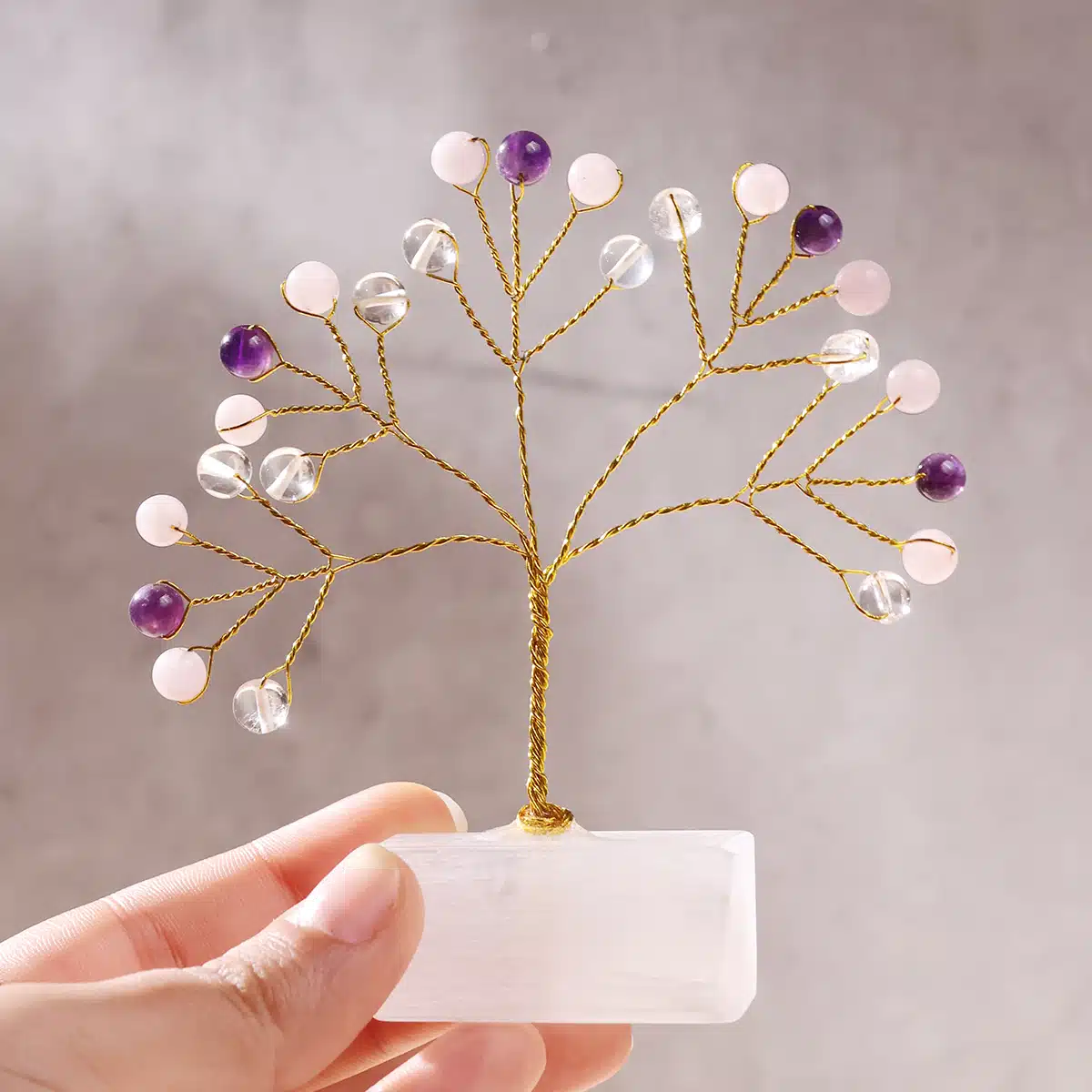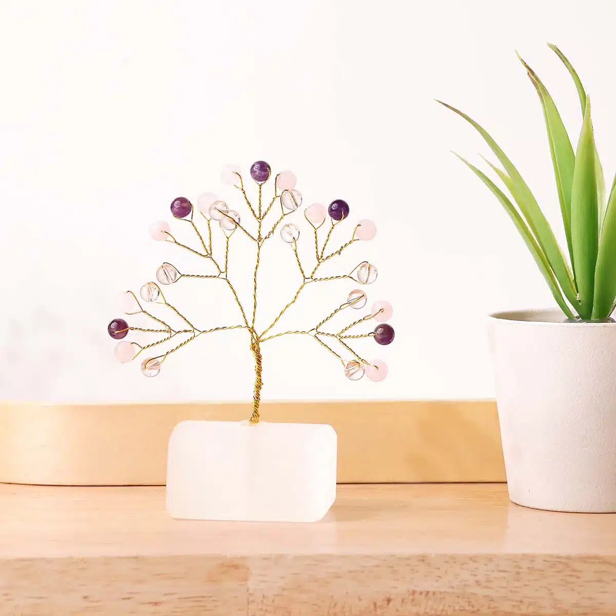 Benefits of Peace and Calm Beads on Selenite Raw Root Tree :