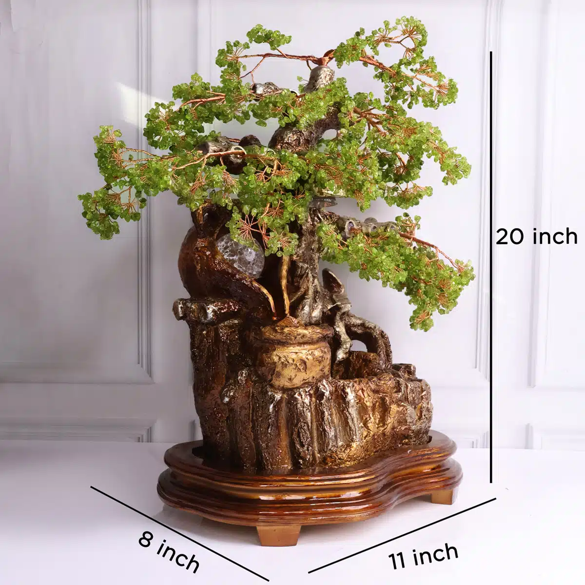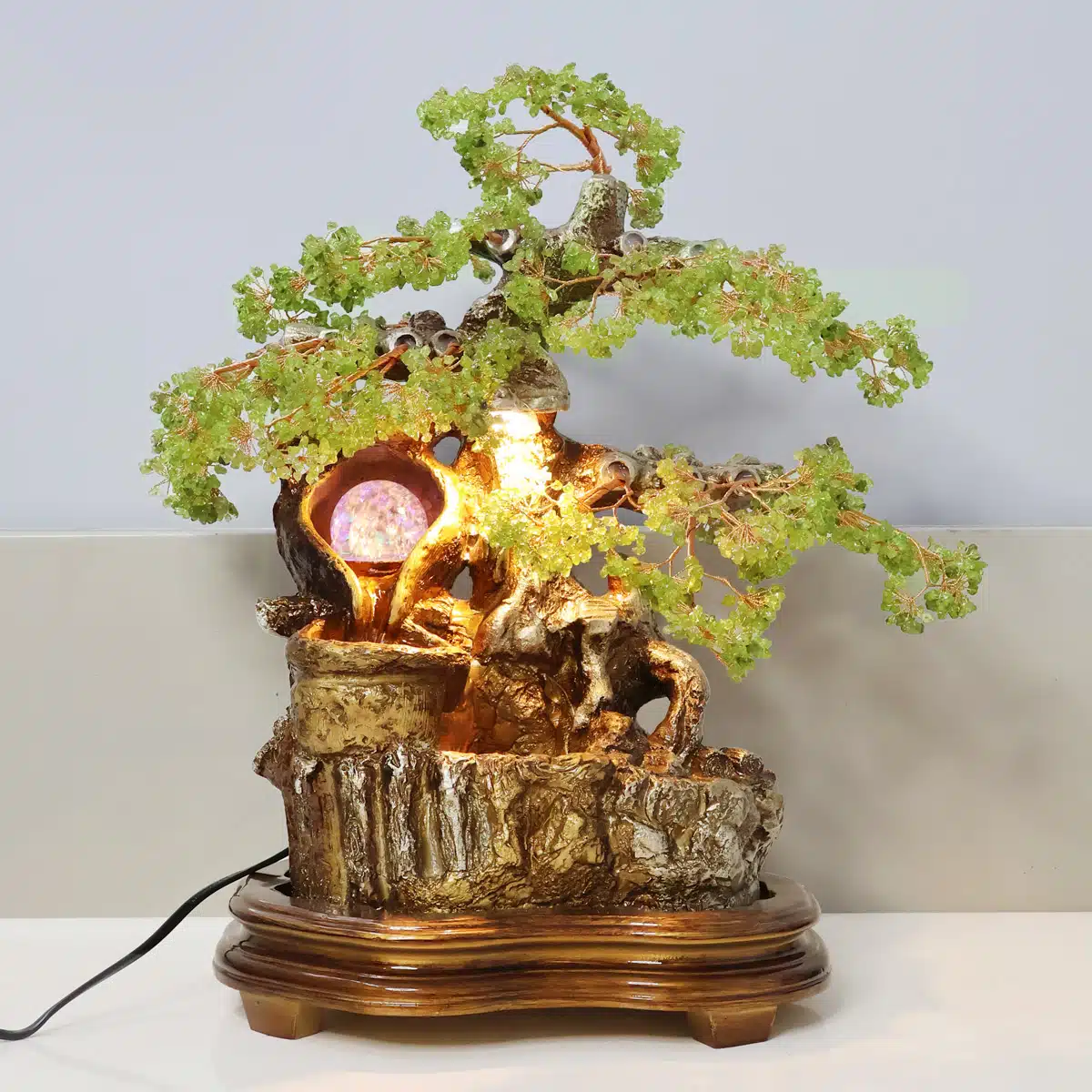 - The water fountain not only adds a calming ambiance but also enhances the visual appeal of the peridot tree.