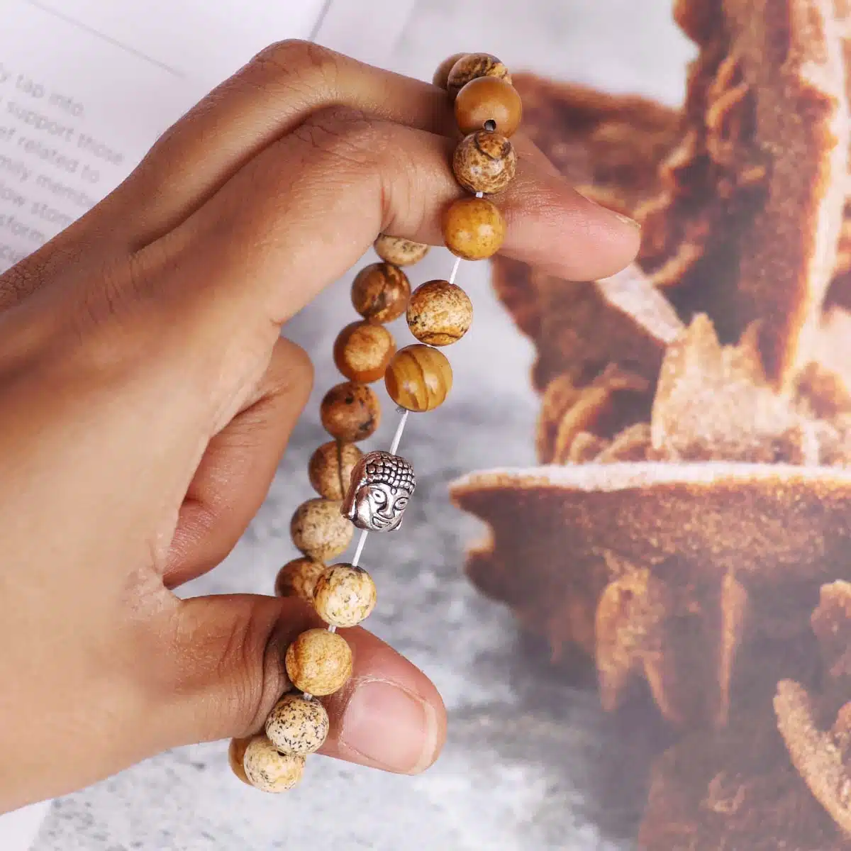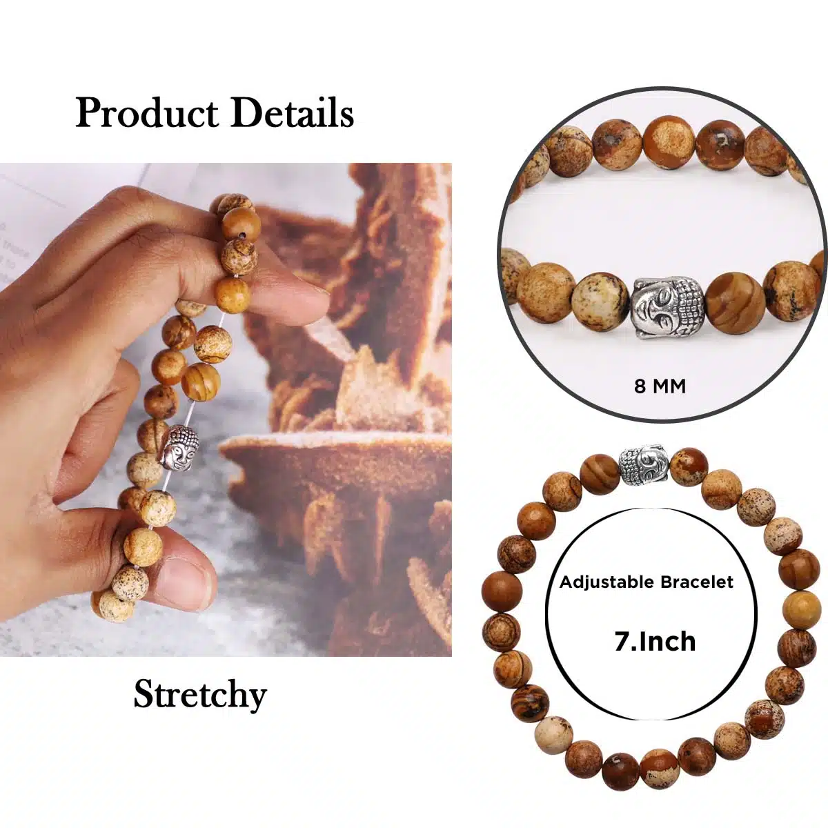 - Material: Picture Jasper,Metal Type-Elastic,Color-Brown.