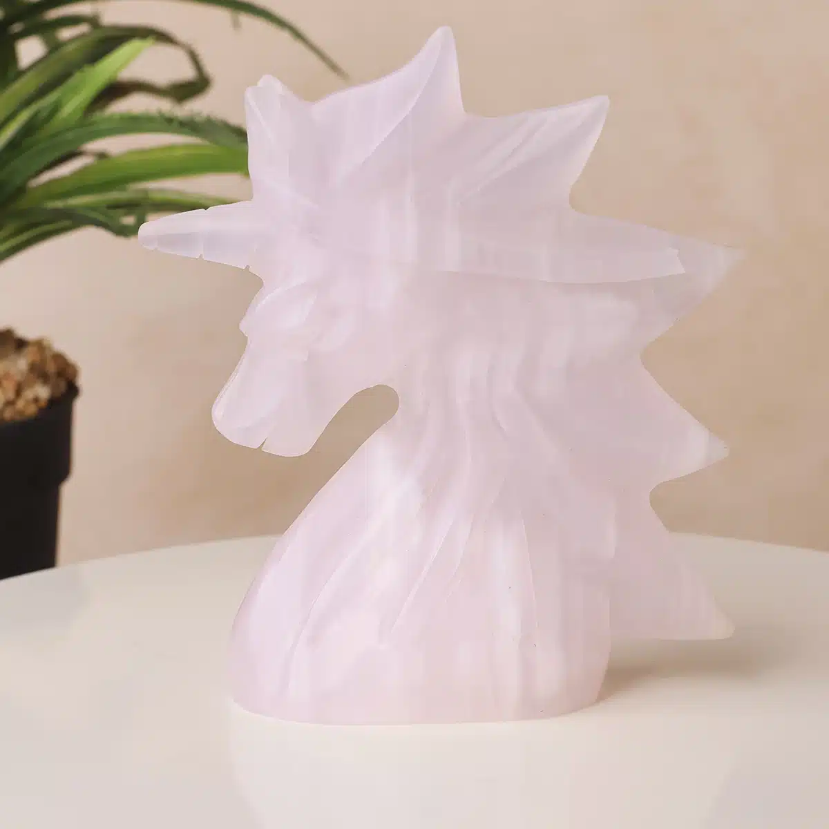 - A creature of light and grace, the Pink Calcite Unicorn is truly mesmerizing.