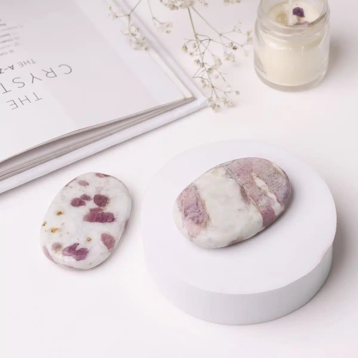 - Holding the palm stone during meditation or stressful times promotes a calming effect on the nervous system. It encourages a shift from fear to trust and from pain to healing.