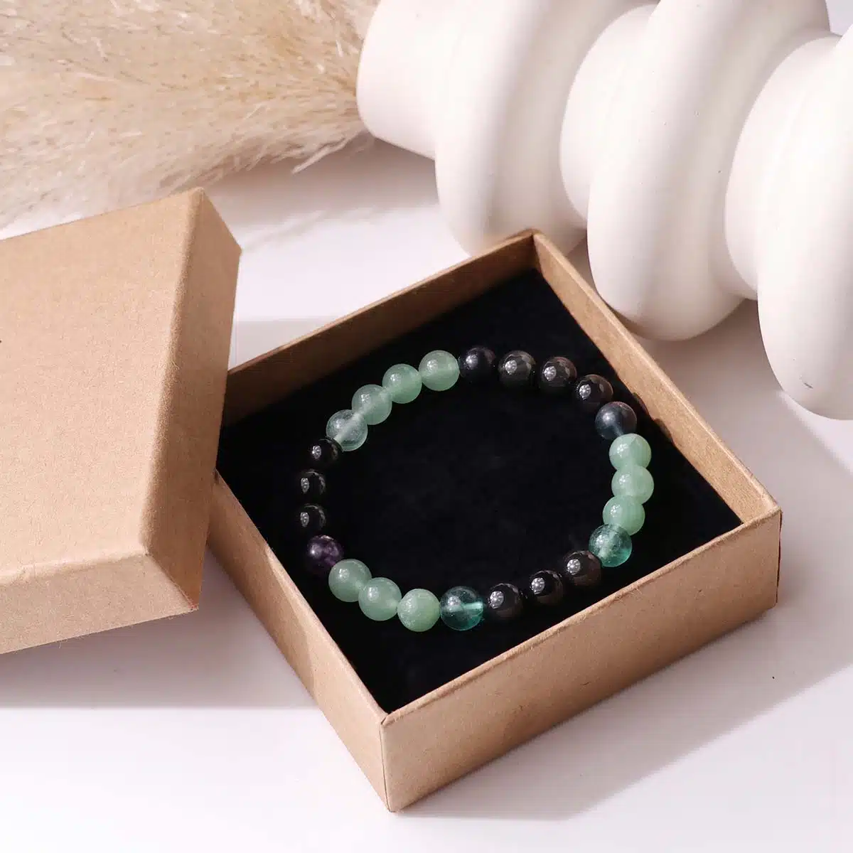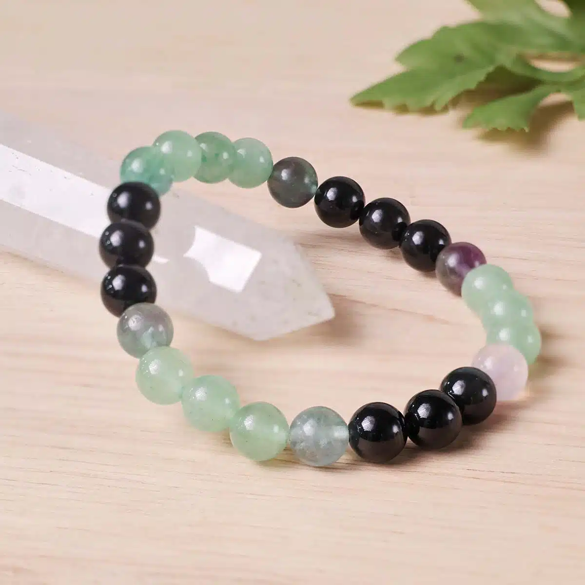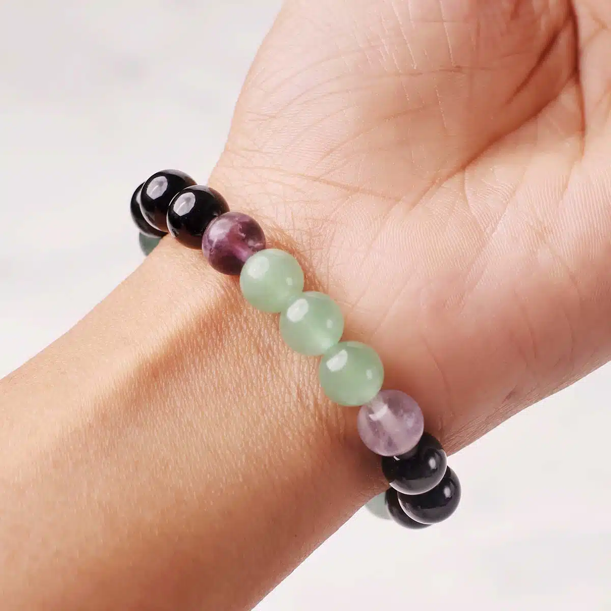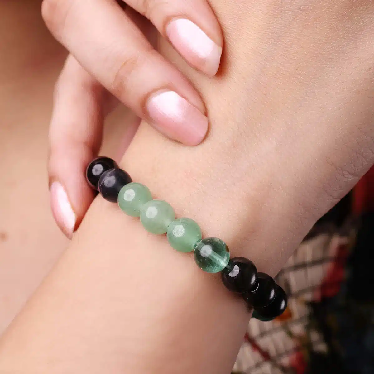 This Pisces Bracelet is made using the following quality power healing beads 8mm Fluorite,Obsidian,Green Aventurine.The bracelet made using strong jewellery elastic and will comfortably stretch to fIt’sizes.
