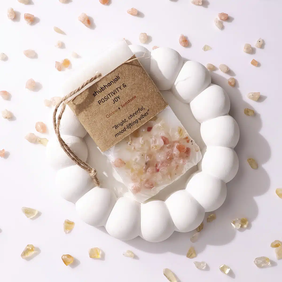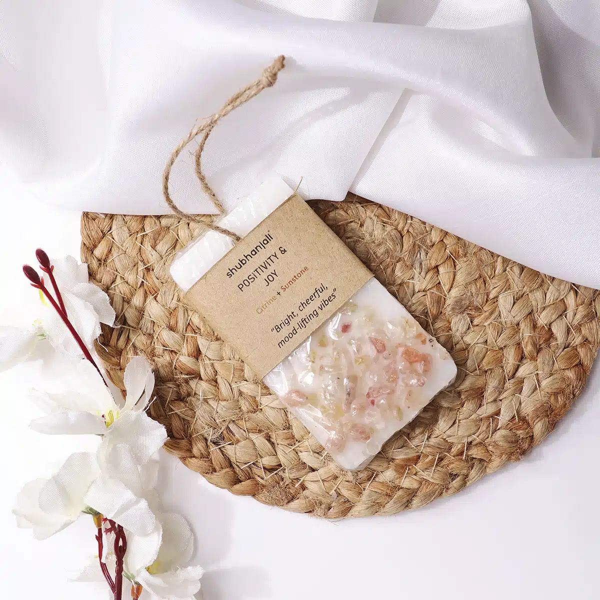 - A perfect fusion of aromatherapy and crystal healing, designed to brighten your spirit and energize your surroundings with positivity and joy.