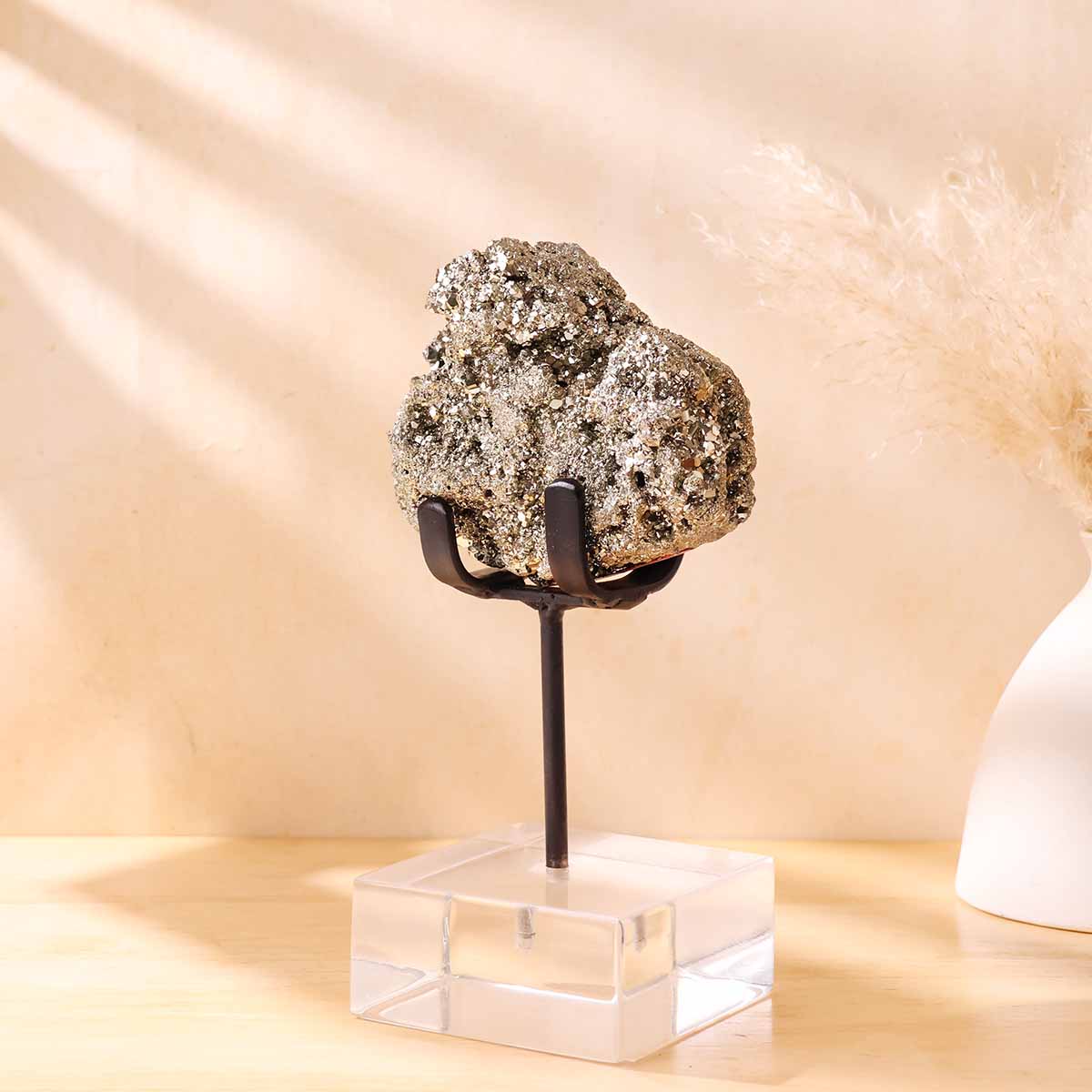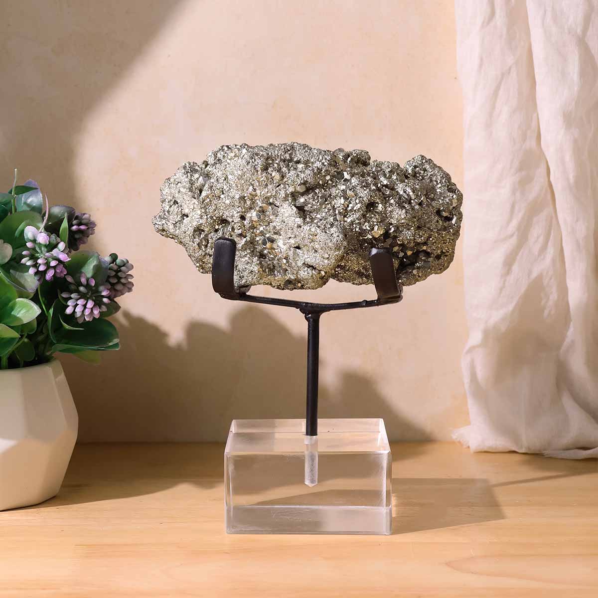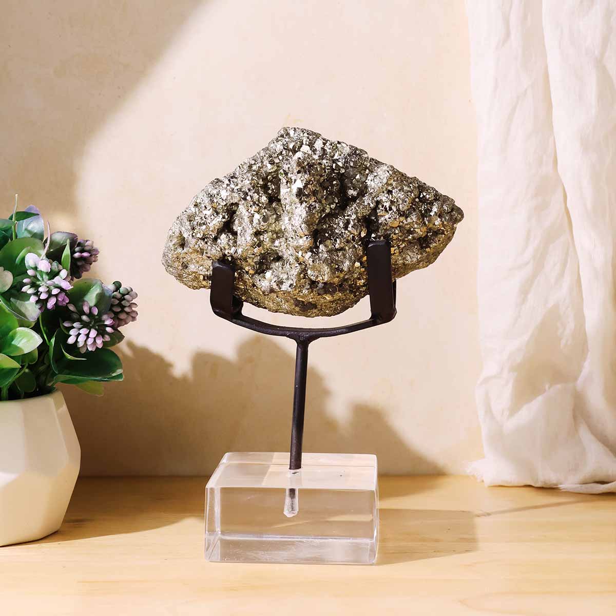Pyrite Cluster with Black Stand | Natural Stone | Wealth & Protection Decor