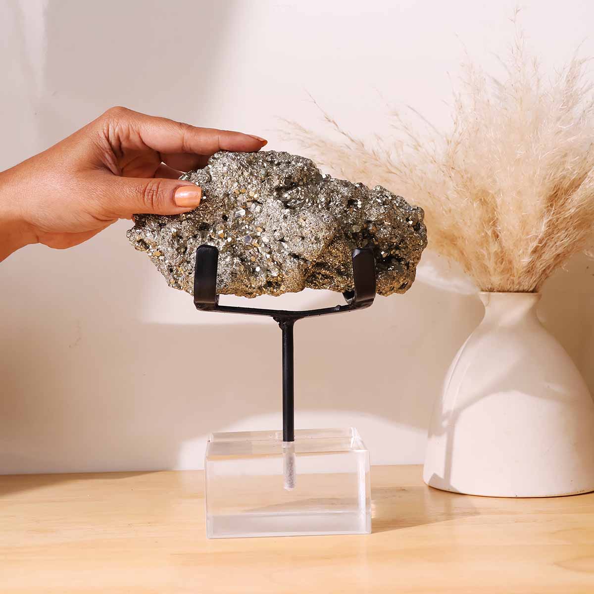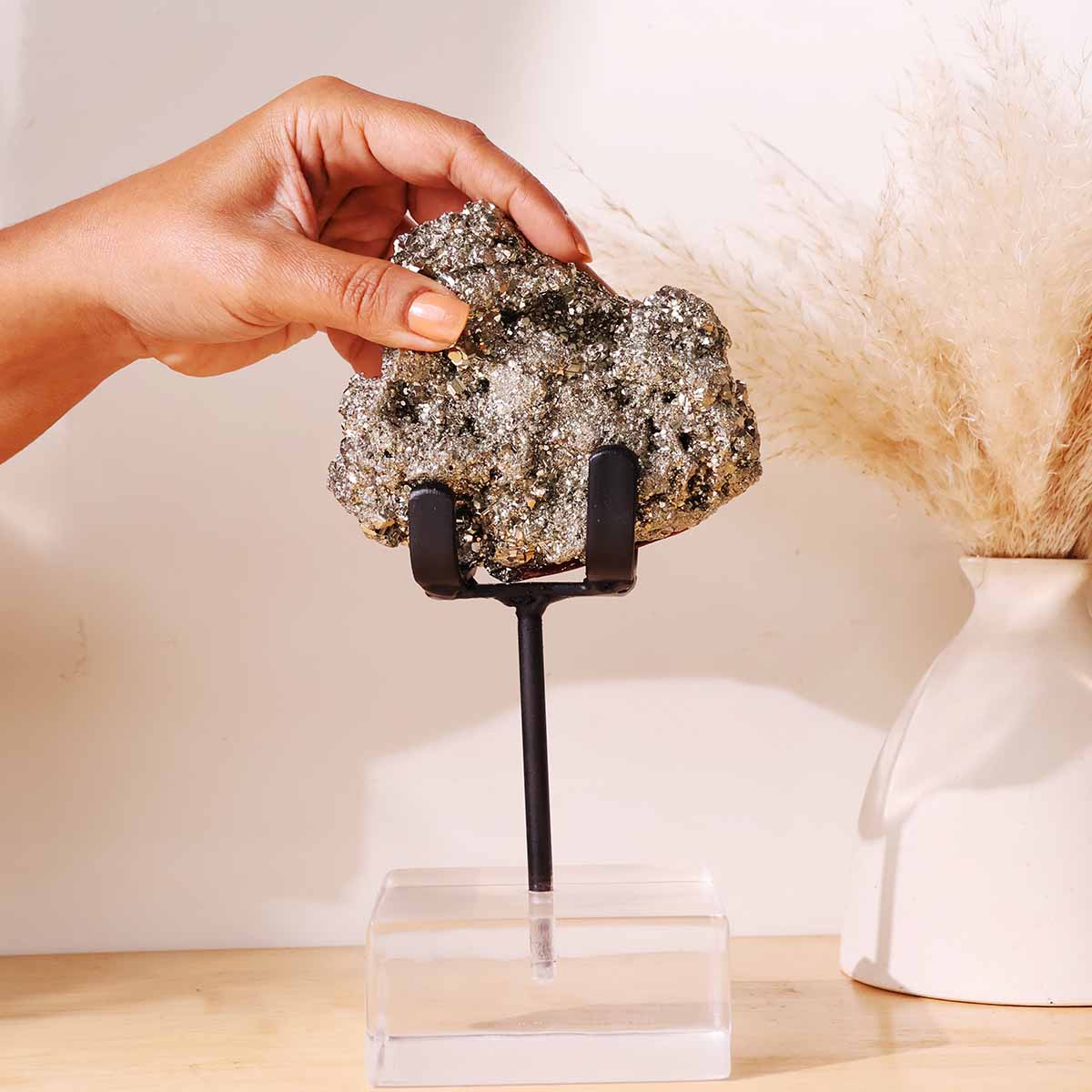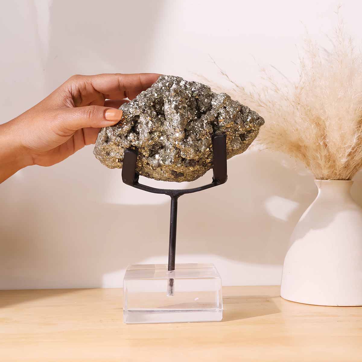 Pyrite Cluster with Black Stand | Natural Stone | Wealth & Protection Decor