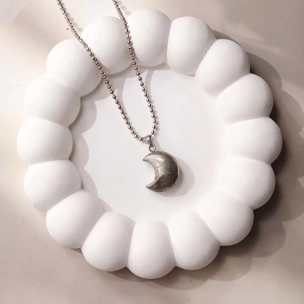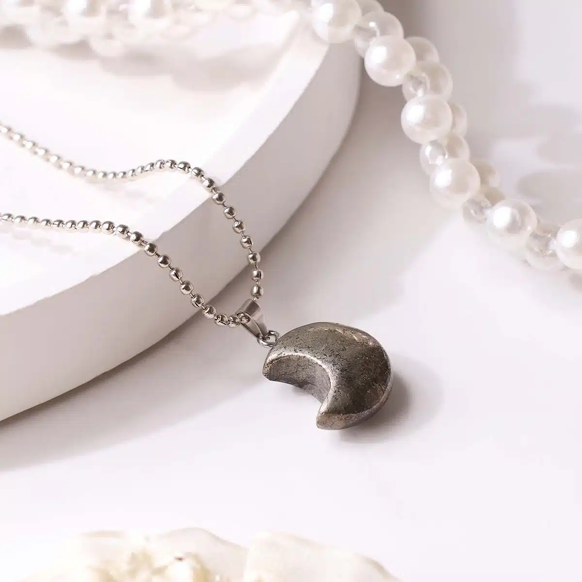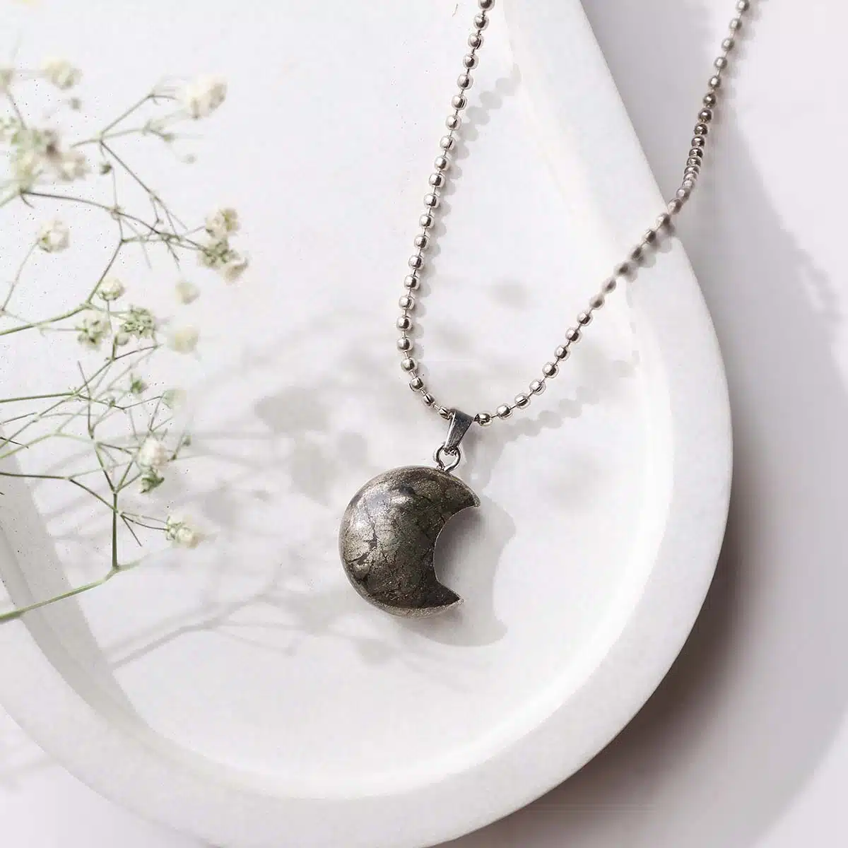 - The half-moon shape symbolizes renewal, intuition, and cycles of growth, enhancing Pyrite’s empowering energy.