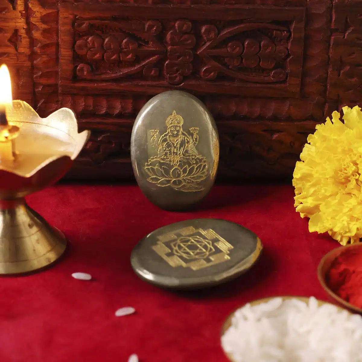Embodies Goddess Lakshmi’s energy, inviting prosperity, wealth, and good fortune into your life and surroundings.