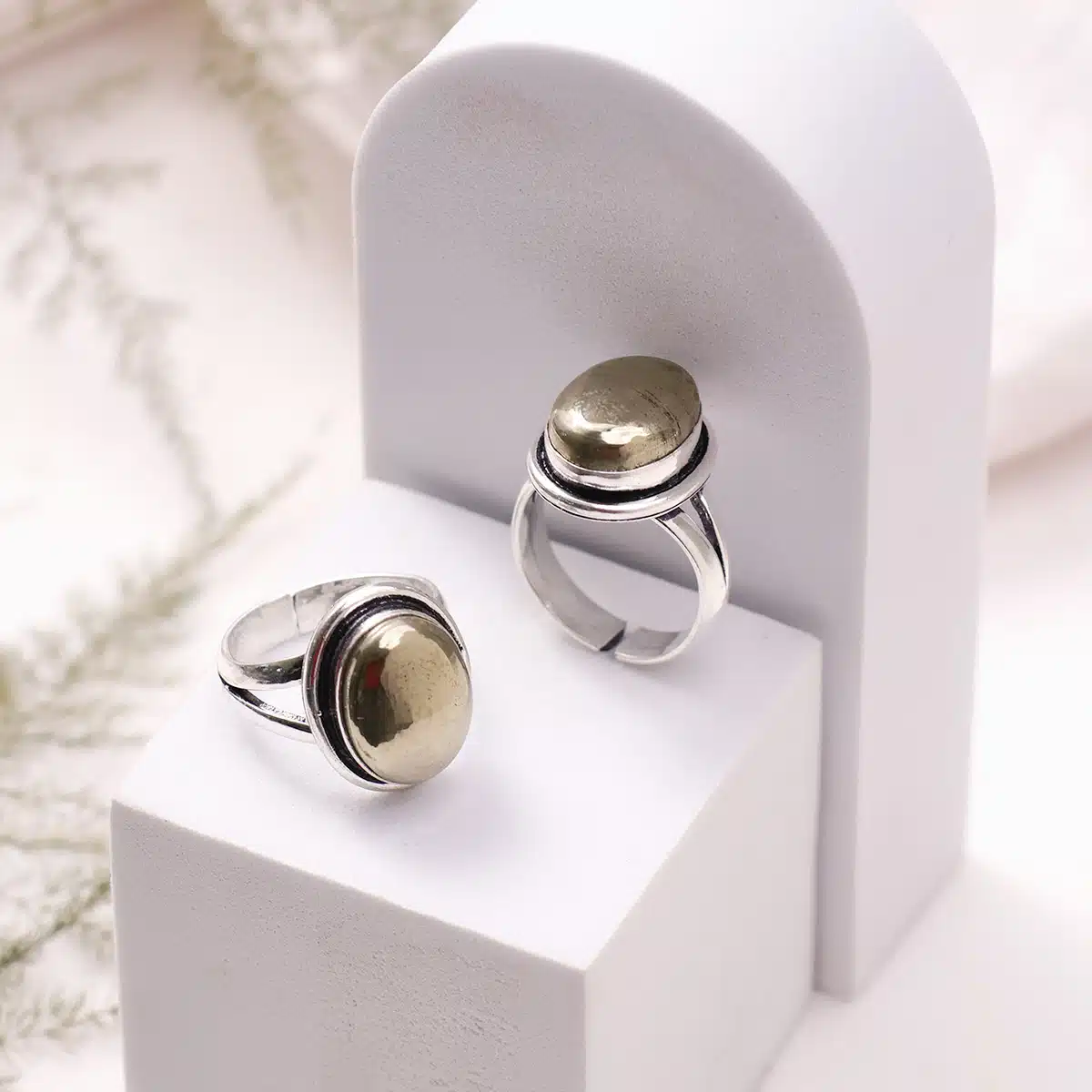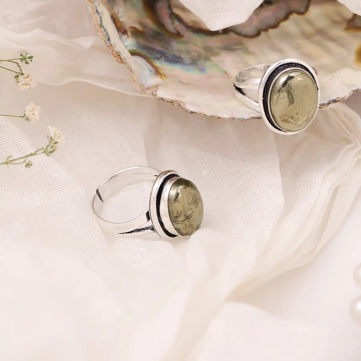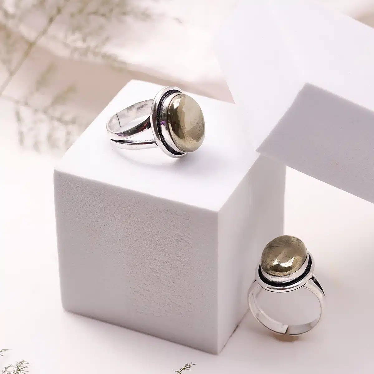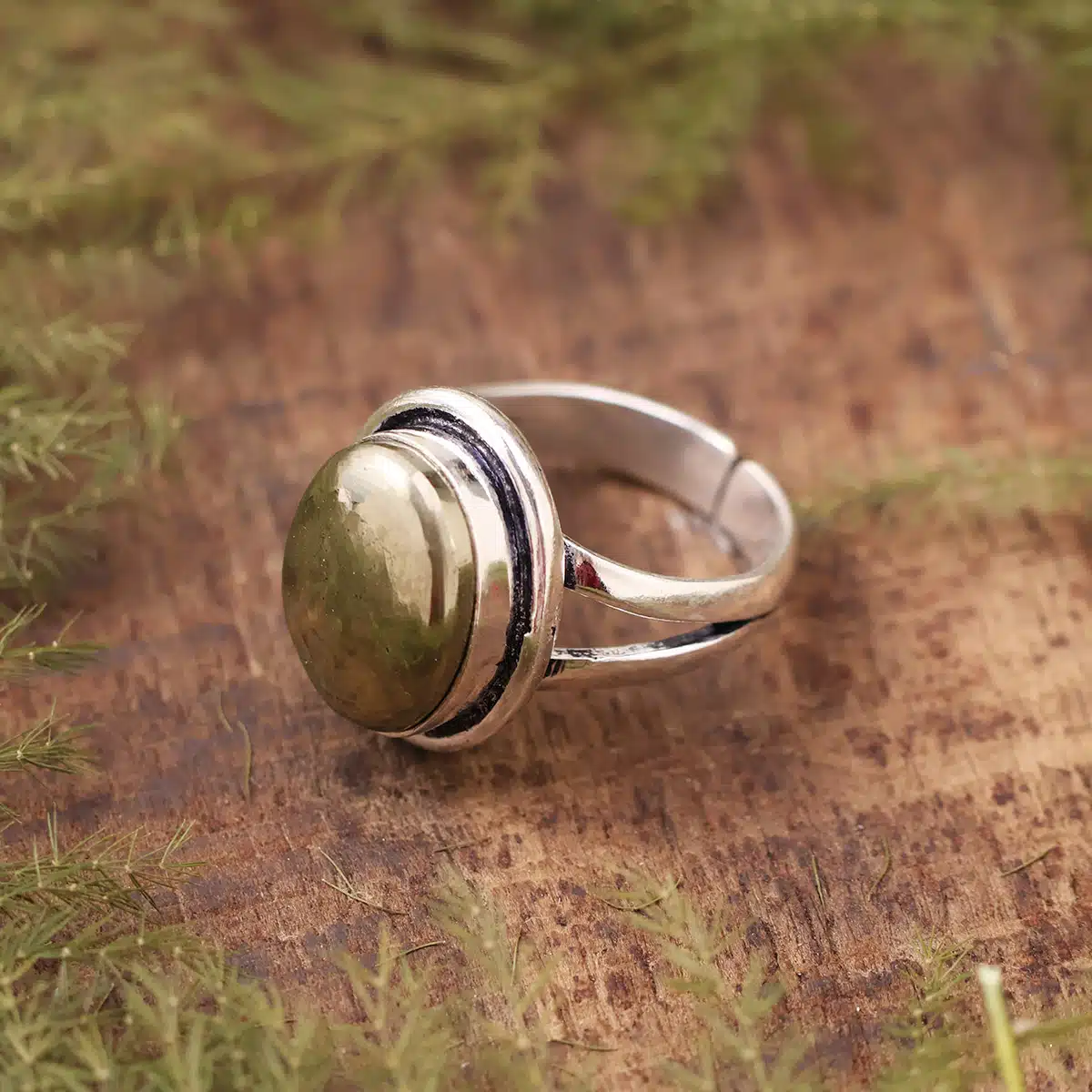 Pyrite Oval Shape Stone Alloy Metal Adjustable Ring