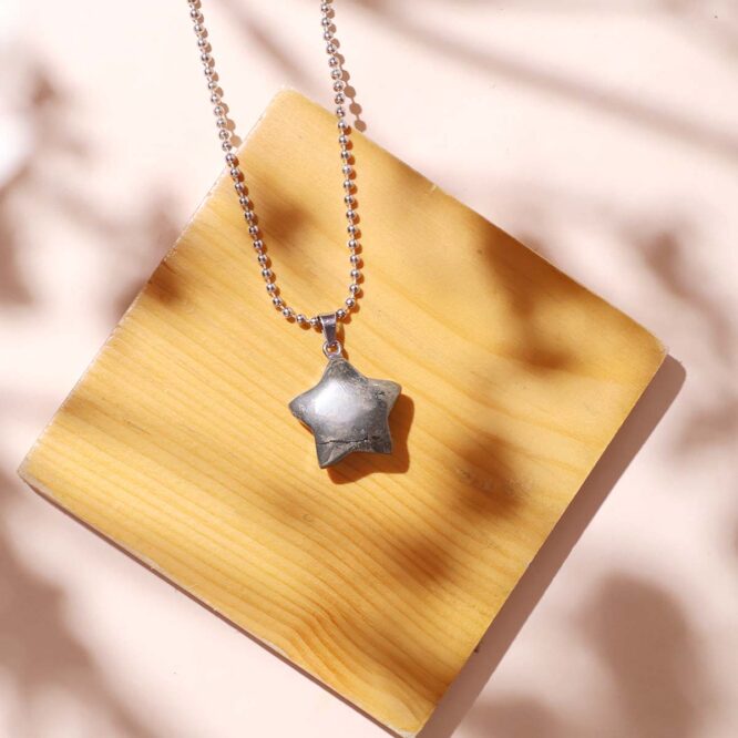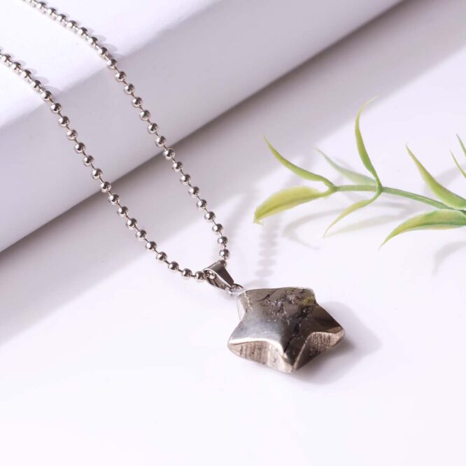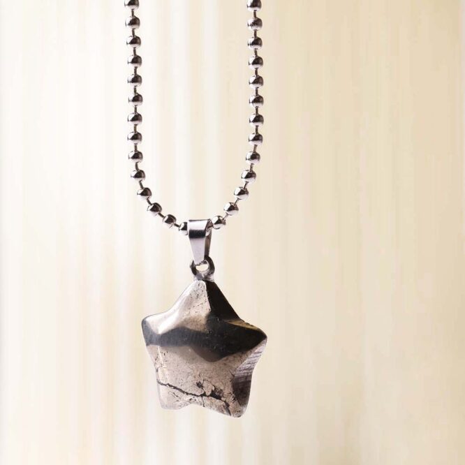 The Pyrite Star Pendant is a striking symbol of protection, abundance, and confidence. Crafted from natural Pyrite, this star-shaped pendant radiates powerful energy that shields against negativity while attracting prosperity and success.