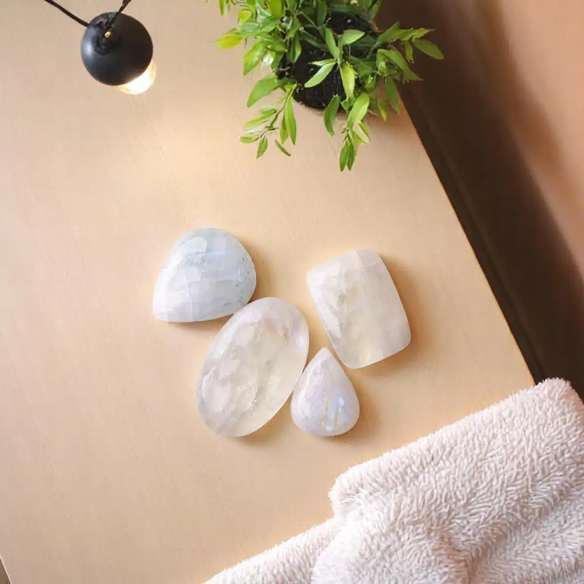 - Known as a goddess stone, Rainbow Moonstone harmonizes with feminine energy and the moon’s cycles. It supports self-discovery, compassion, and spiritual growth.