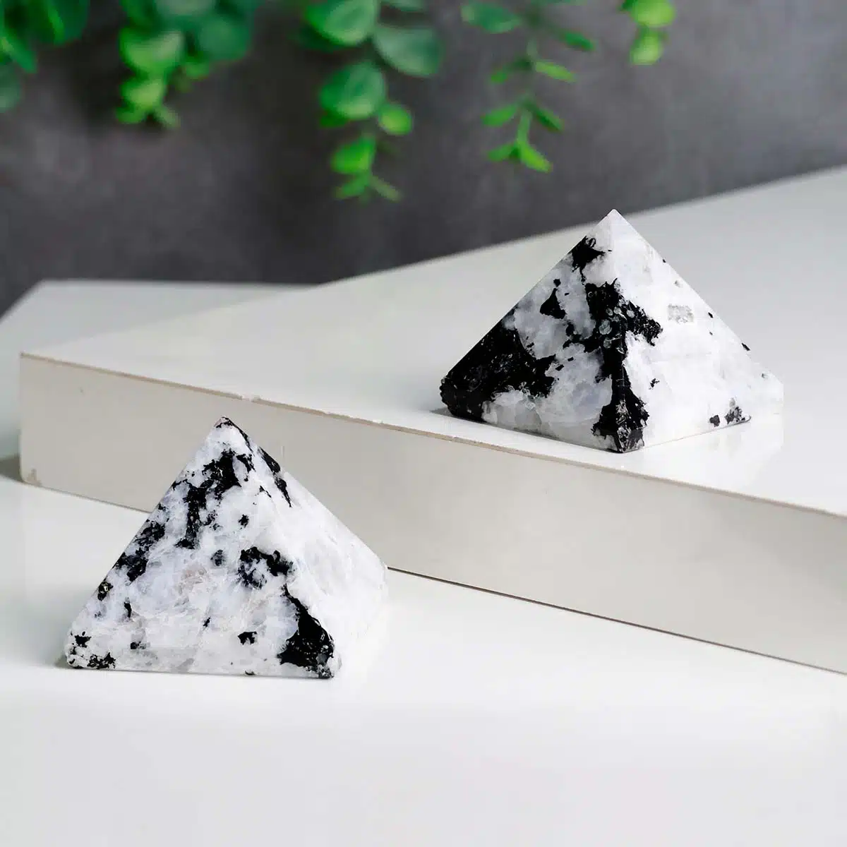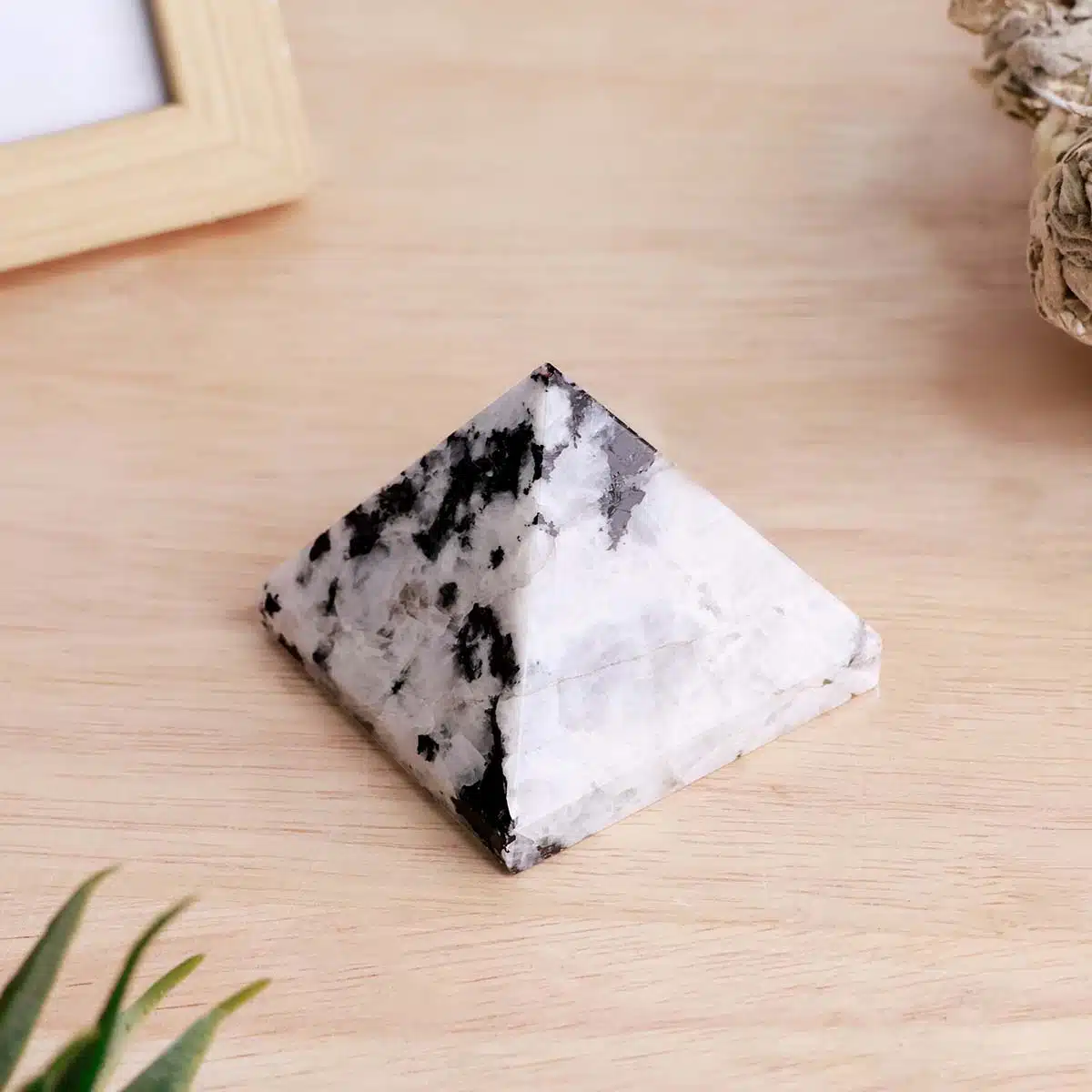 - Pyramid increase the presence of energy which maintains a balance in the atmosphere. It ensures physical and mental stability making your relationships with people stronger.Pyramid gives you a peaceful sleep and makes you inclined towards spirituality too.Moonstone helps you clearly envision what you want, and then gives you the persistence to see it through.This moonstone pyramid can help concentrate and direct that energy, making it ideal for healing work and meditation.