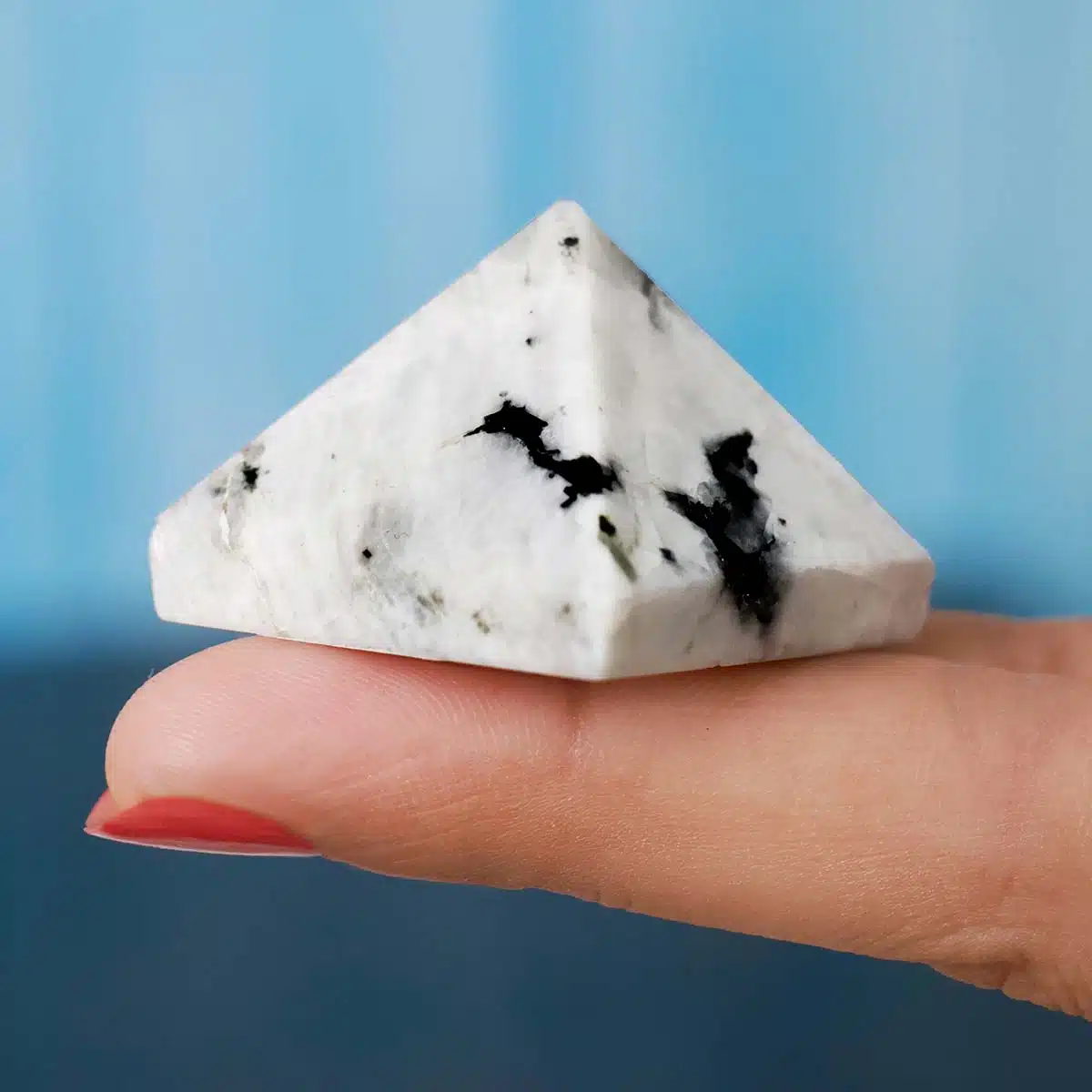 - Products Size : Length 2-3 cm x Width 3-4 cm x Height 2-3 cm | Weight : 20-40 gm|Color : White.The pyramid represents the union of the Trinity and the four directions, creating a vortex of energy that can heal, purify, and magnify whatever you focus on or intend. Working with these Rainbow Moonstone Goddess Pyramids will help you double-down on igniting your life force!