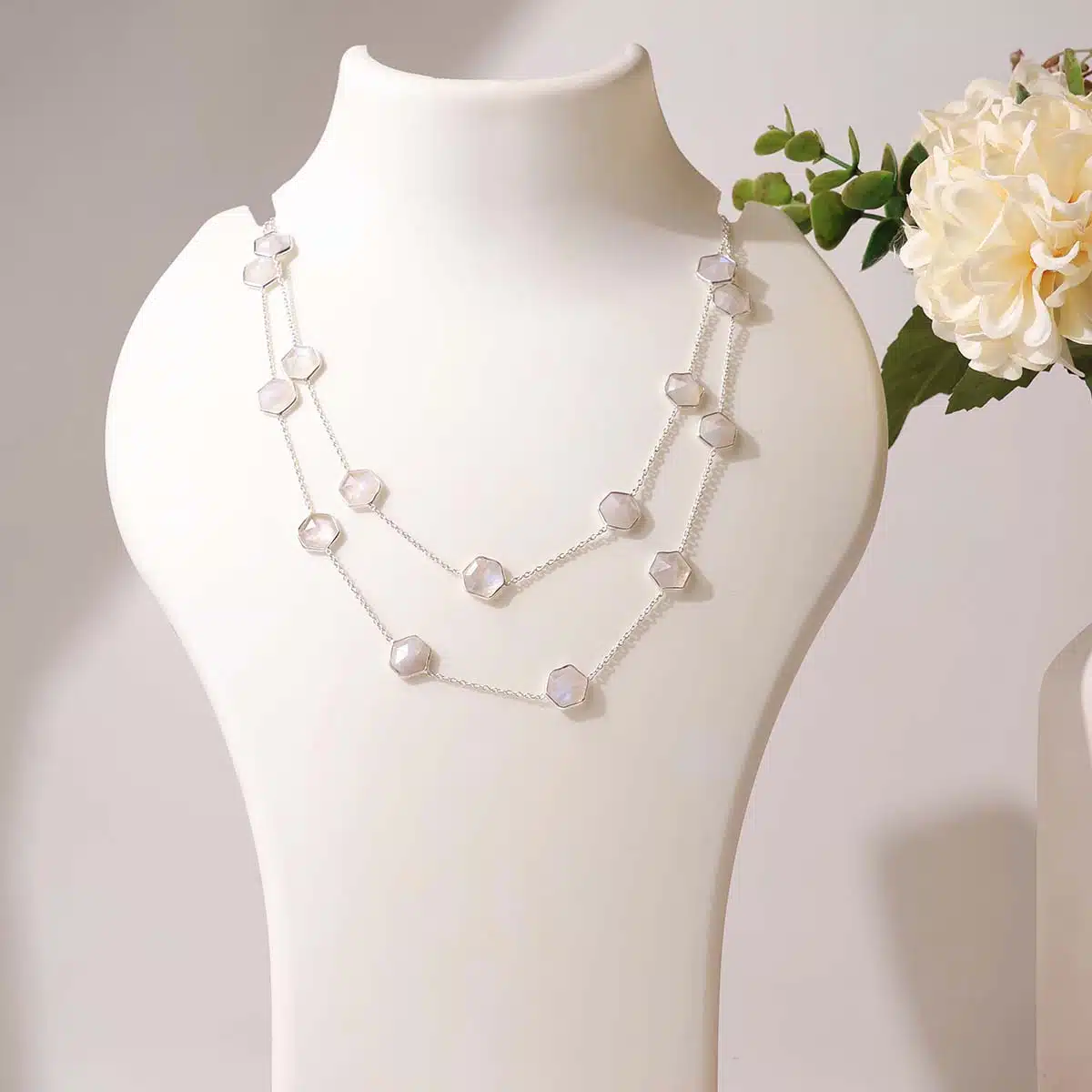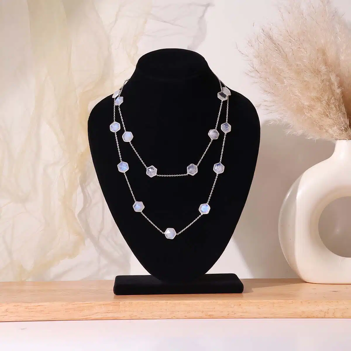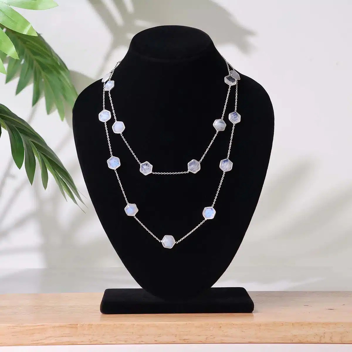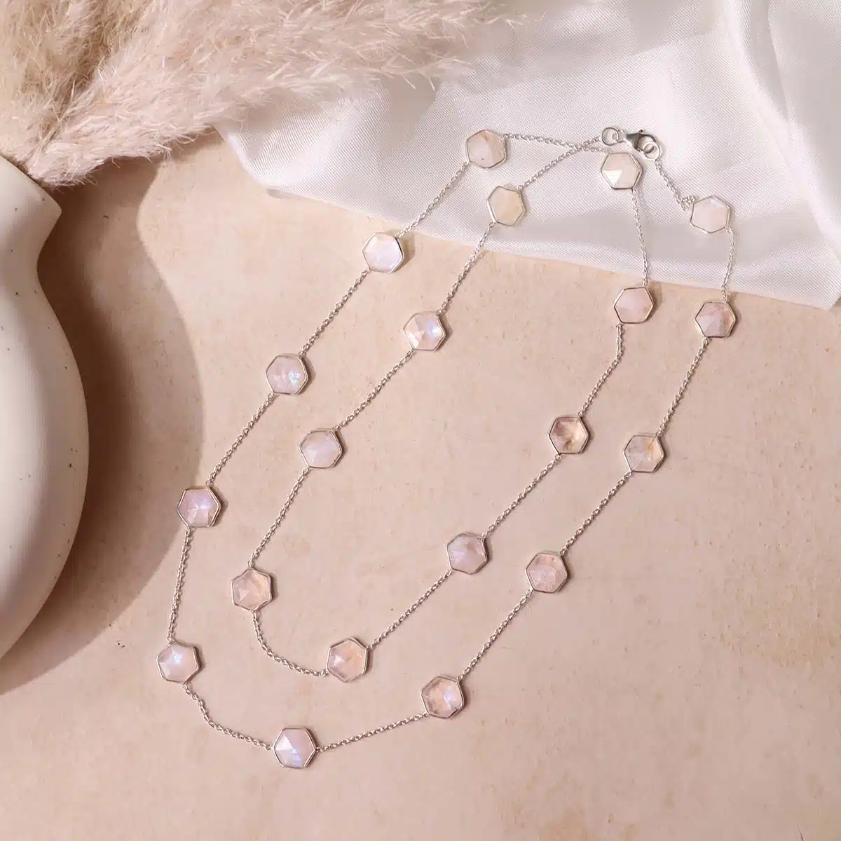 Benefits of Rainbow Moonstone Silver Necklace (Hexagon) :