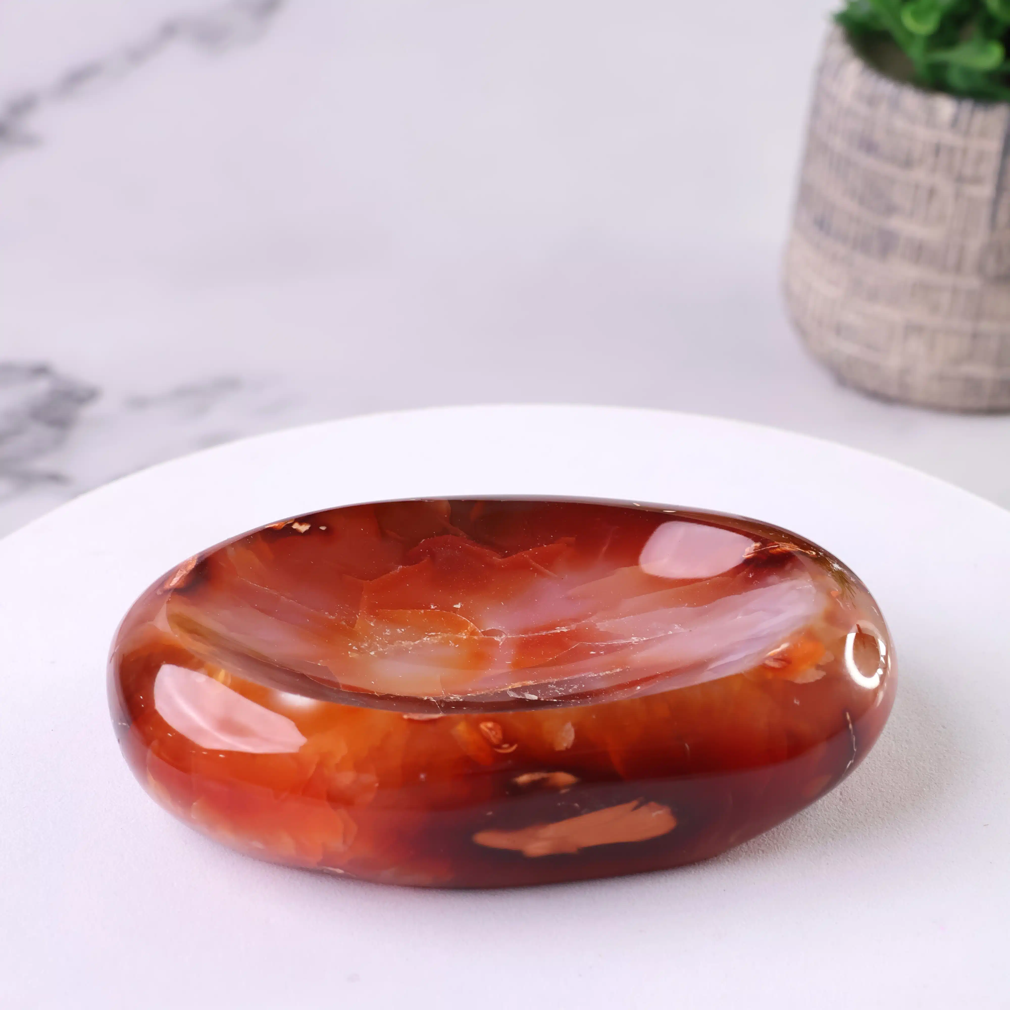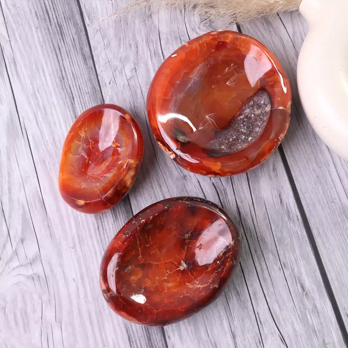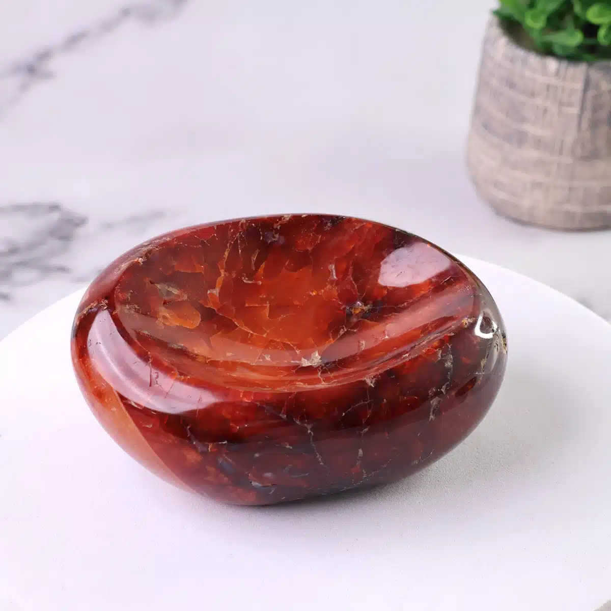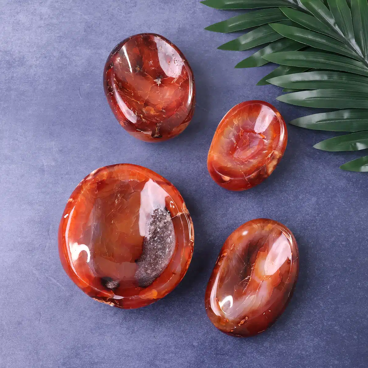 In many traditions, Carnelian is considered a stone of prosperity. Keeping small coins, crystals, or affirmations related to success in the bowl can attract financial growth, career advancement, or lucky opportunities.