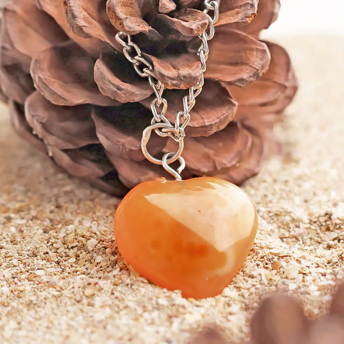 Carnelian, known as the Power Stone. Builds confidence, courage, passion and power. Assists in taking action. Helps to overcome the fear of taking action. It helps to detoxify and purify the body from bad habits such as alcohol or drugs. Great stone for females ? reproductive organs, menstrual cramps, infertility. It helps to succeed in personal & professional life. The Divinatory meaning of orange Carnelian: You may get the chance to breathe new life into a relationship.