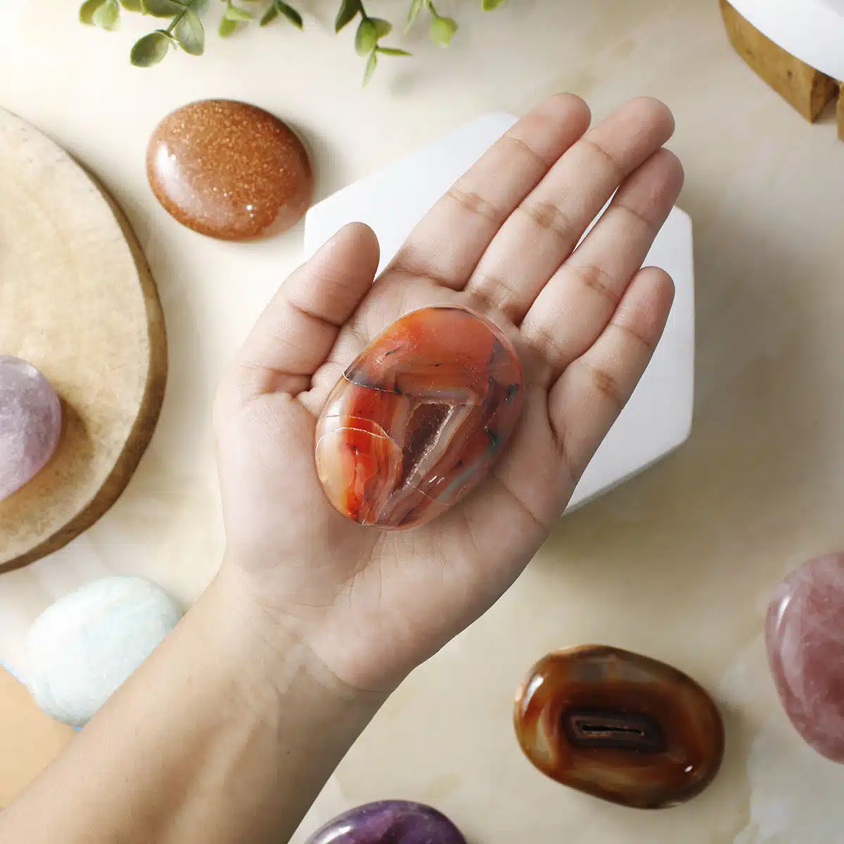 Red Carnelian Palm Stone