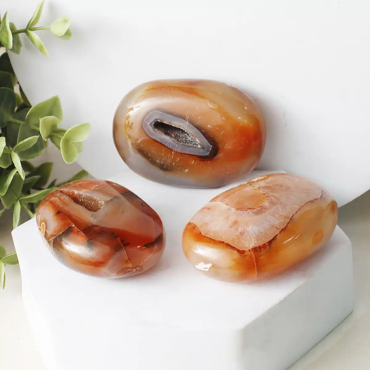 Carnelian, known as the Power Stone. Builds confidence, courage, passion and power. Assists in taking action. Helps to overcome the fear of taking action. It helps to detoxify and purify the body from bad habits such as alcohol or drugs. Great stone for females ? reproductive organs, menstrual cramps, infertility. It helps to succeed in personal & professional life. The Divinatory meaning of orange Carnelian: You may get the chance to breathe new life into a relationship.