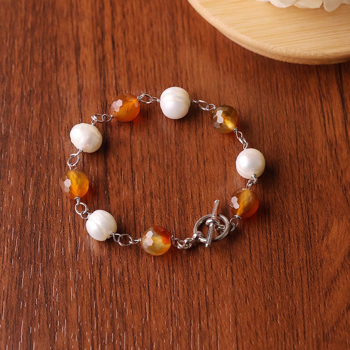 You will receive one natural Red Carnelian Pearl Chain Bracelet similar to the ones shown. Images represent typical quality. Each piece is unique, with natural variations in stone color, pearl shape, and texture.